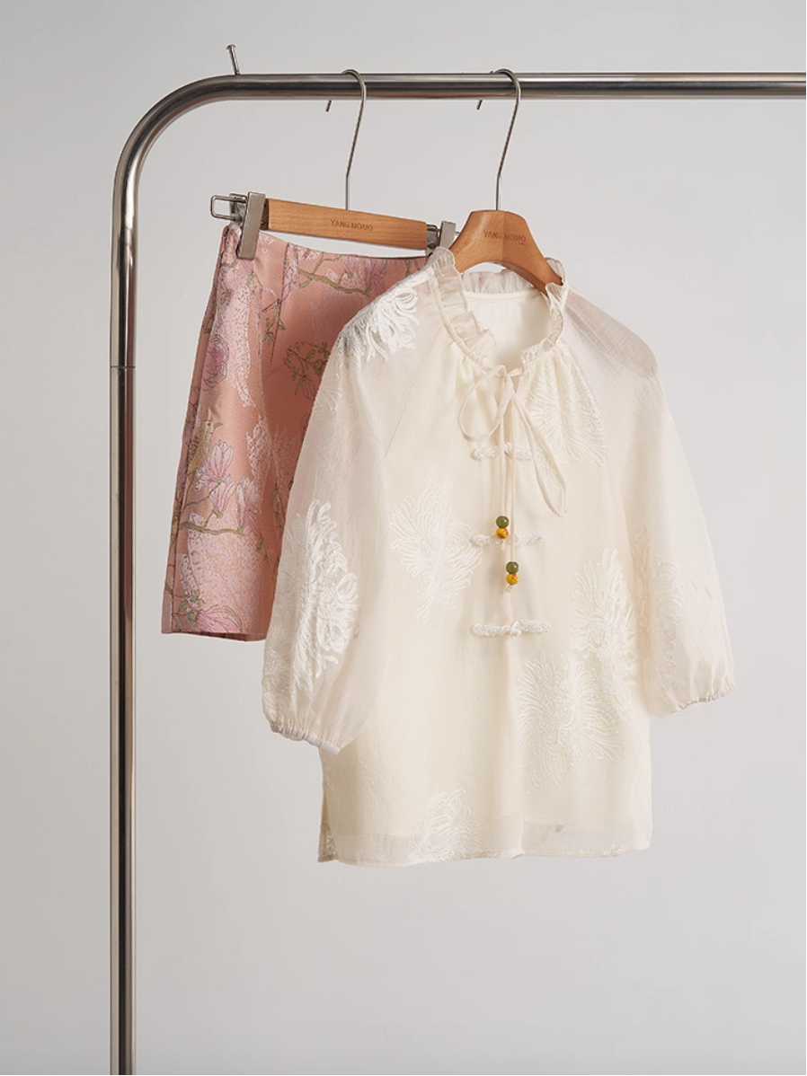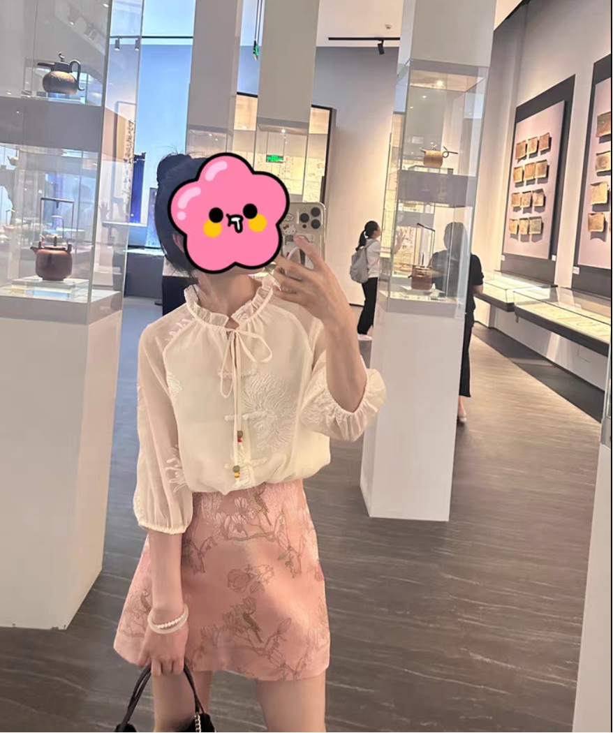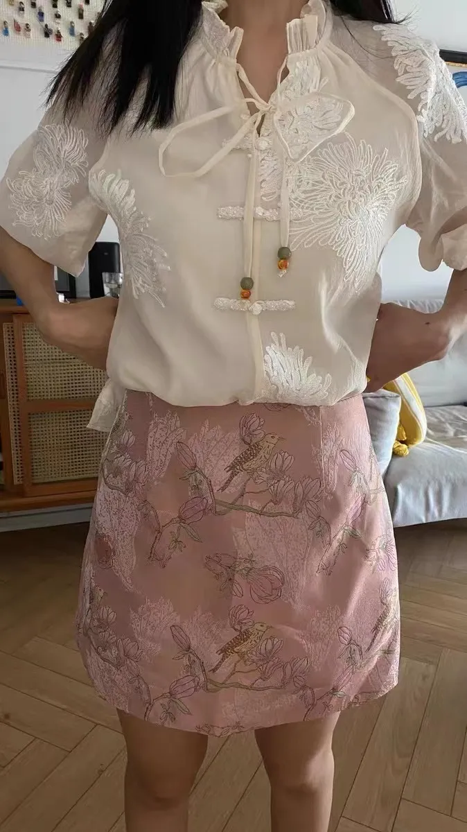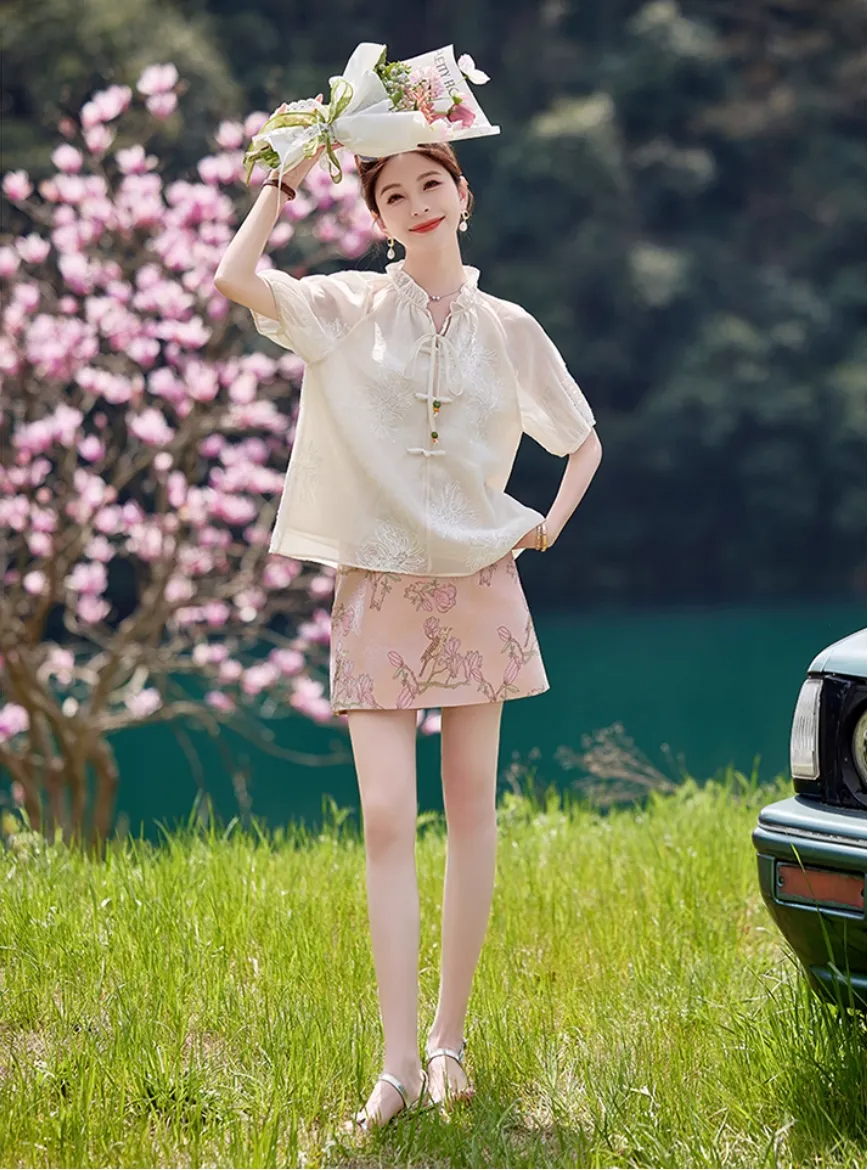 '春日宴' 新中式盘扣刺绣套装(上衣+短裙)