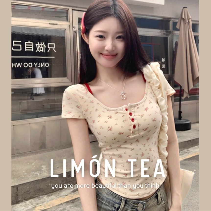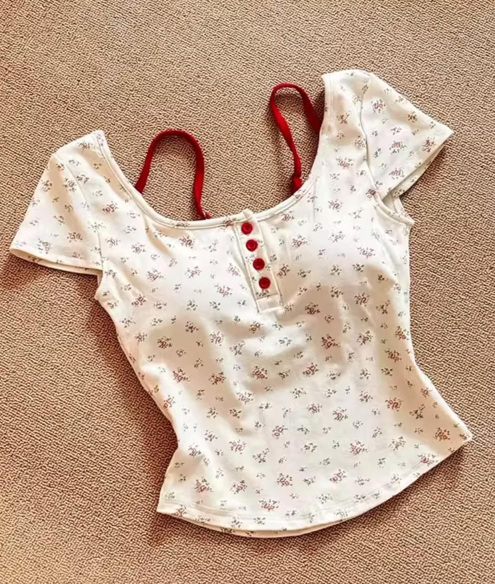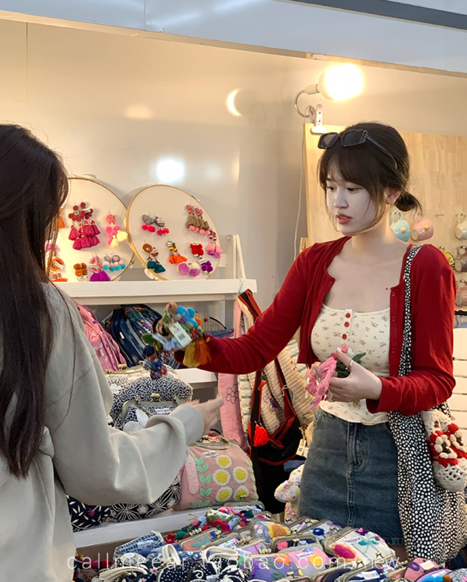 杏色的小碎花加上一点点红色,超级温柔!