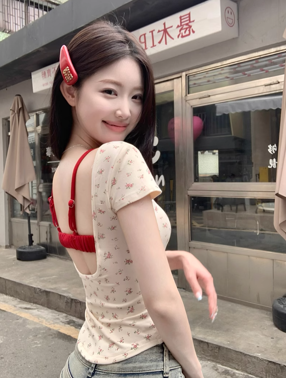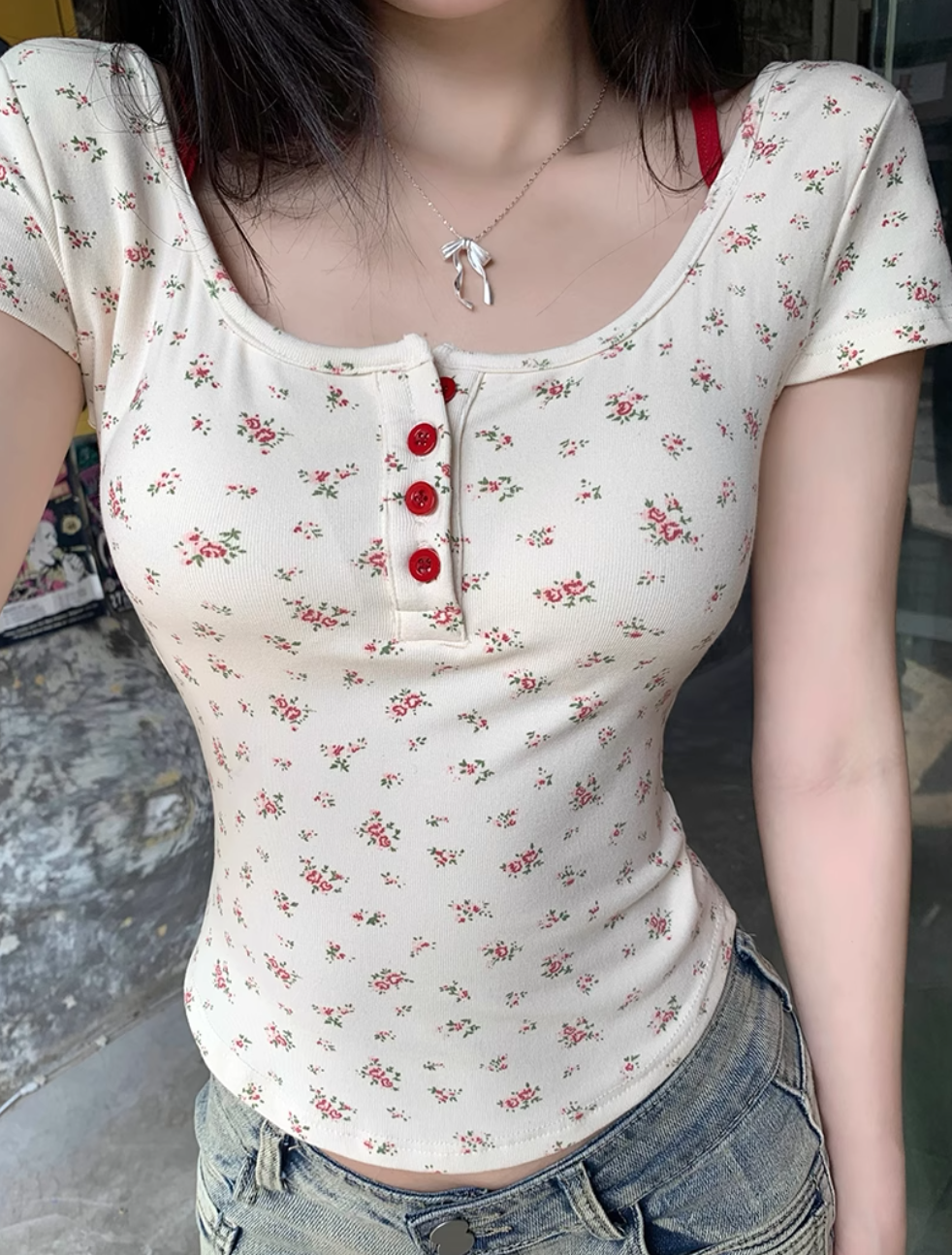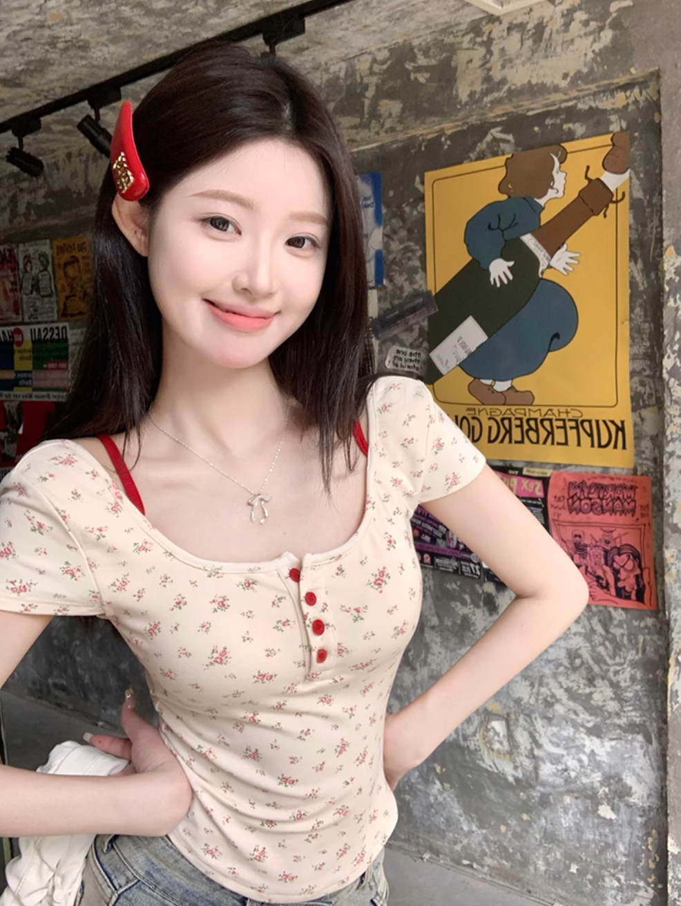 杏色的小碎花加上一点点红色,超级温柔!