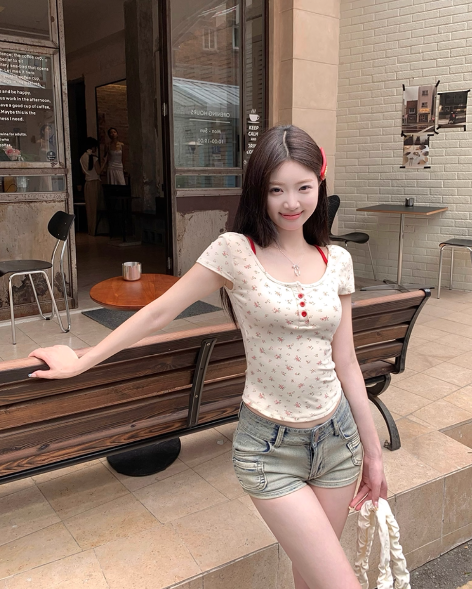 现货|【带胸垫】纯欲假两件T恤