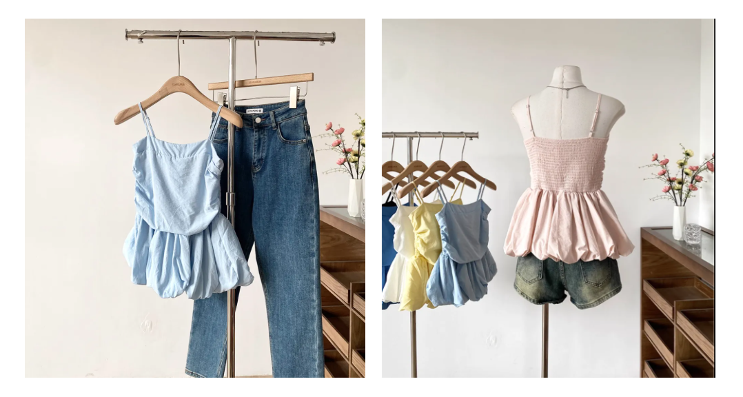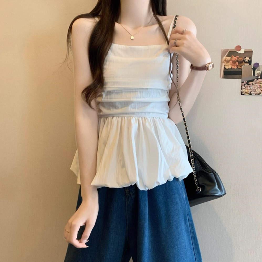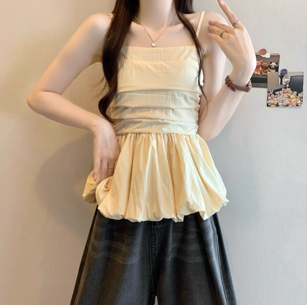 日常基础款吊带加了今年最流行的褶皱和花苞
