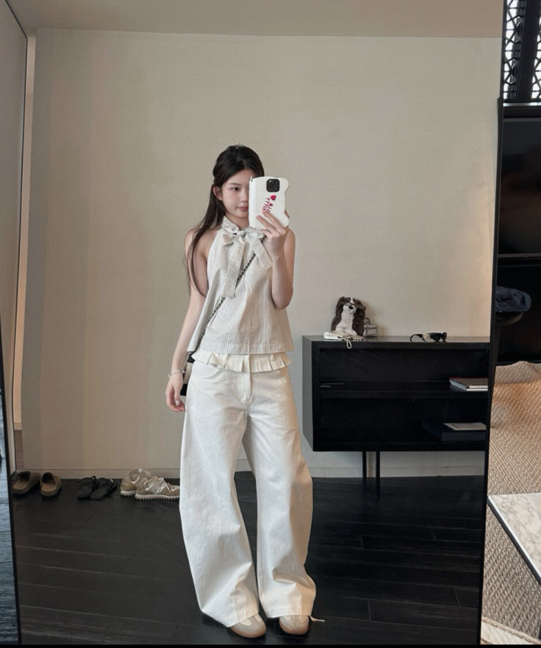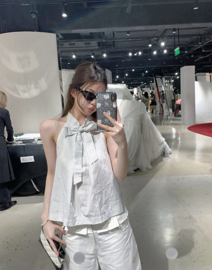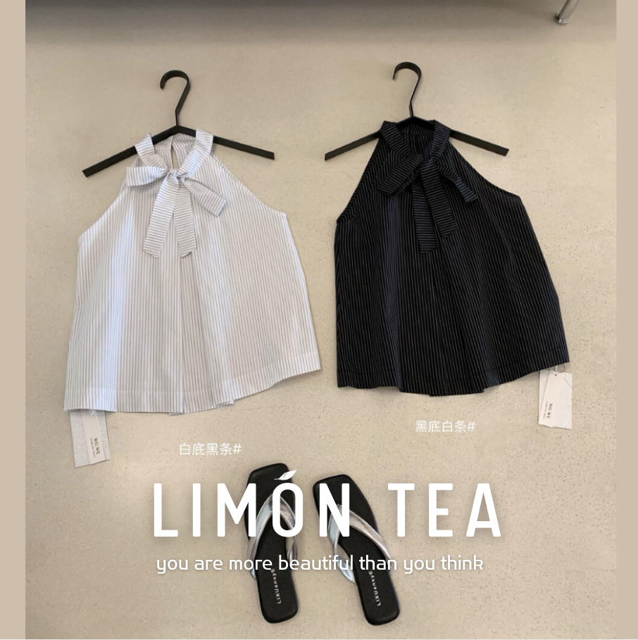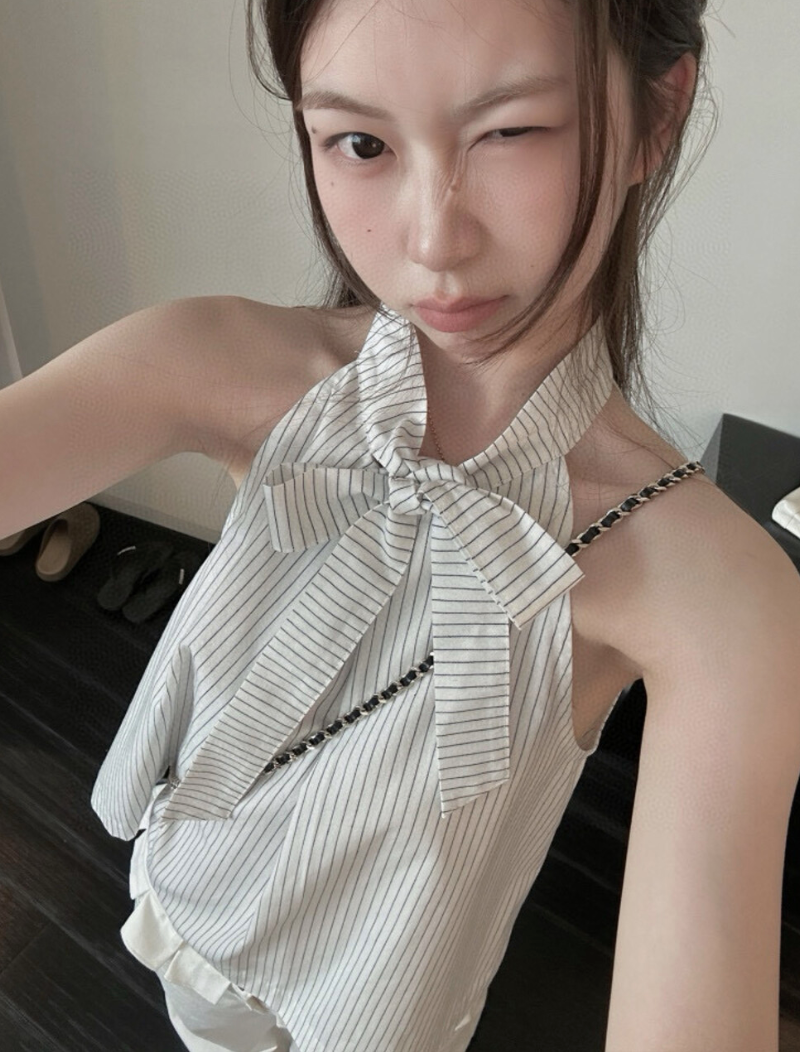 现货|‘韩系温柔’设计感气质条纹挂脖上衣