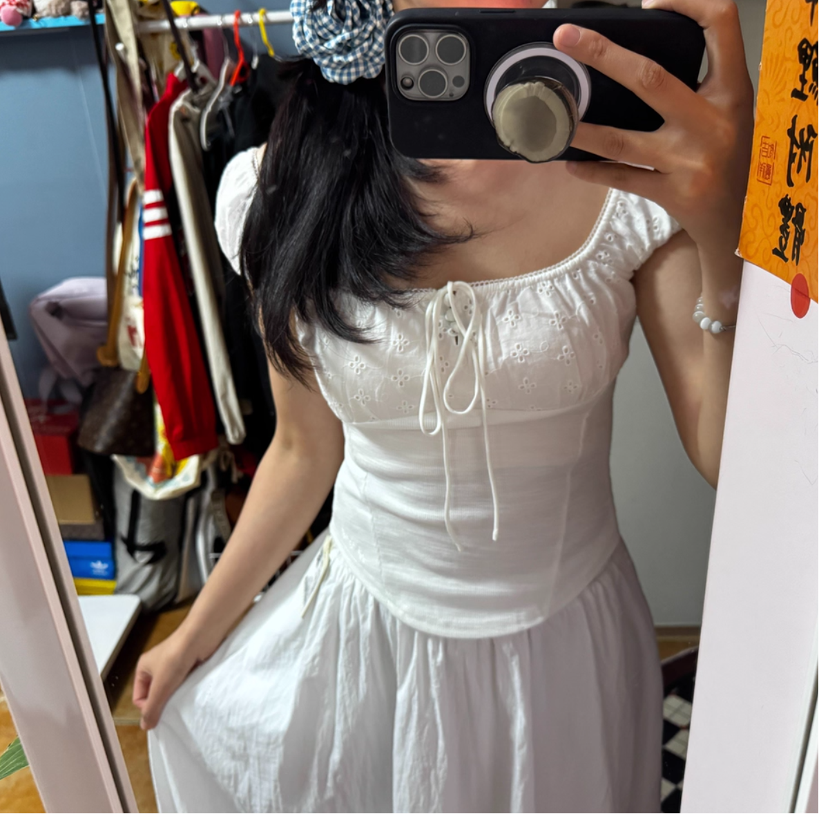 泡泡袖加上方领的设计,超级显瘦!