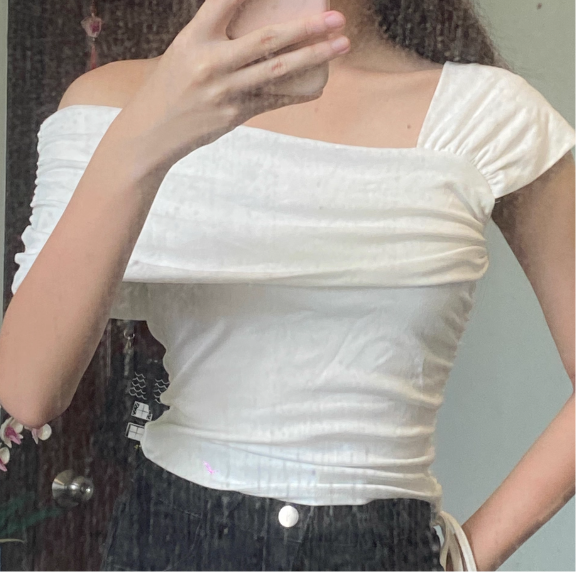 有小设计的一字肩T恤!