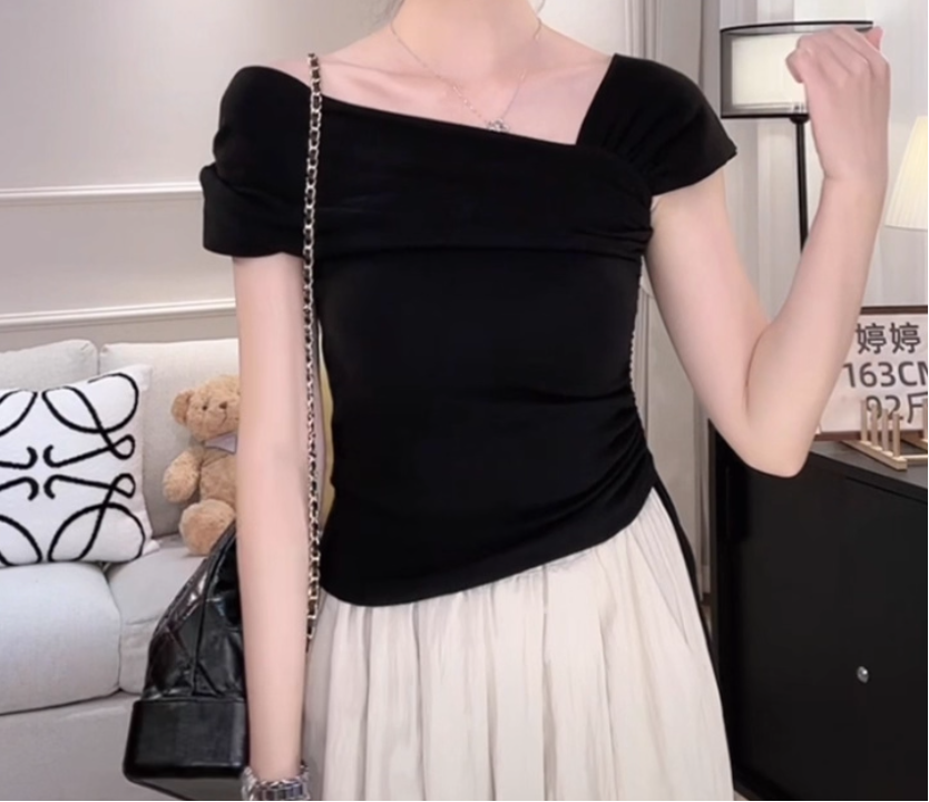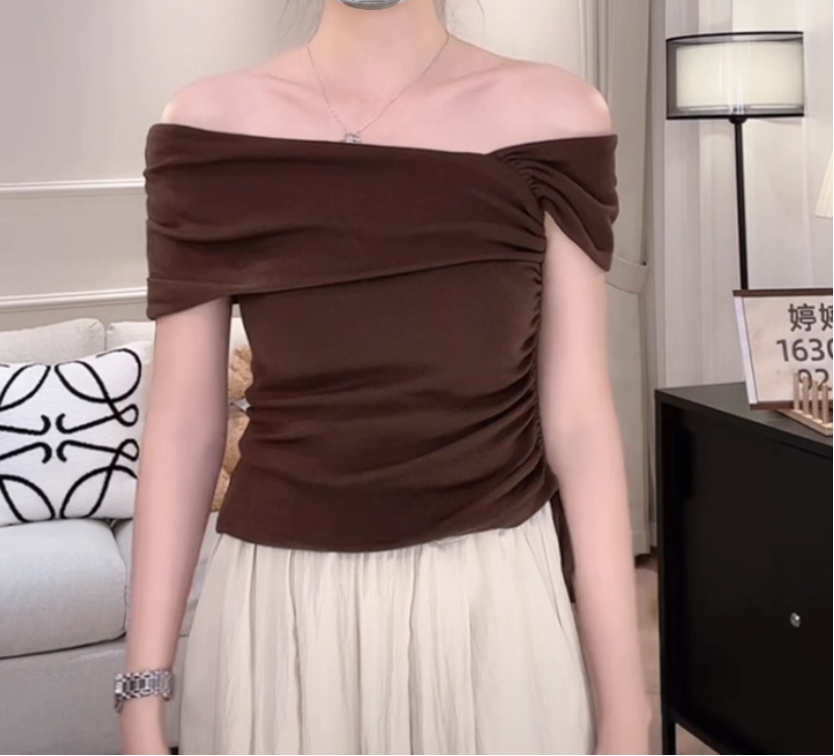 '老钱假日' 一字肩设计感T恤