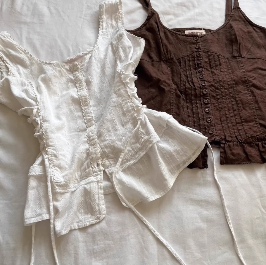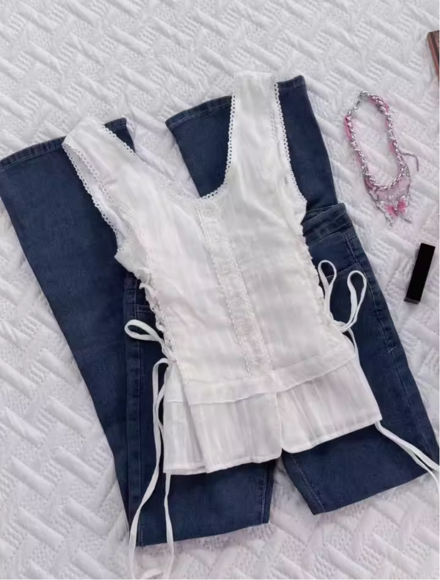 ‘神隐少女’ 设计感法式绑带上衣