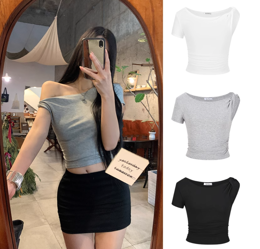 虽然是日常基础款的T恤,但在袖子加上了有设计感的纽结!