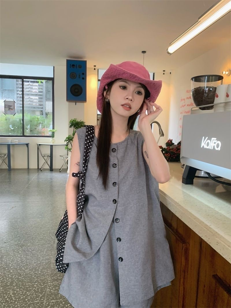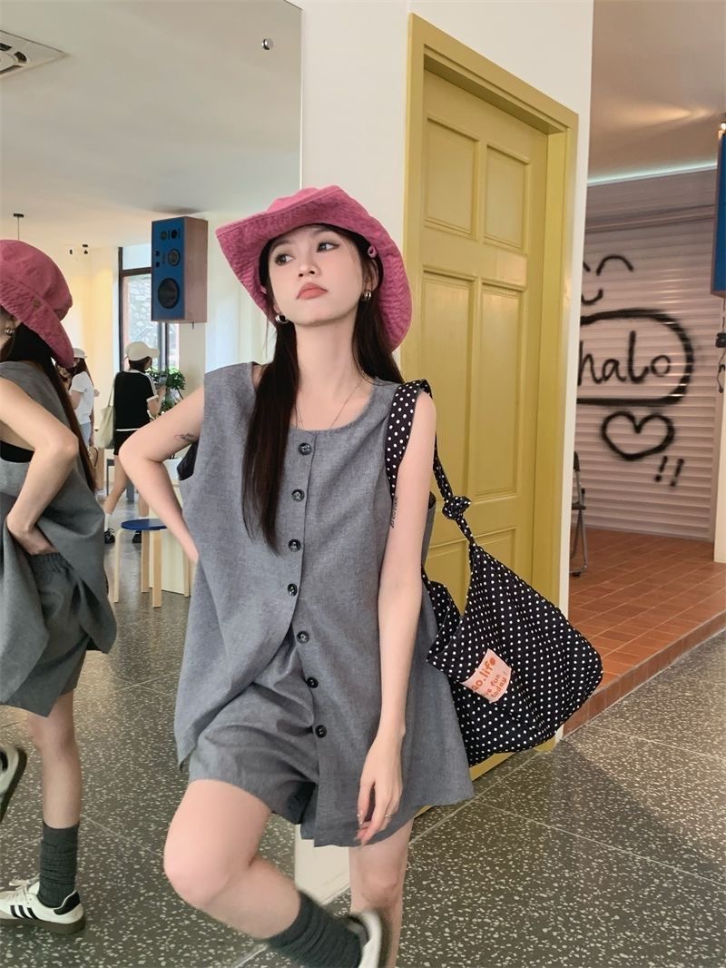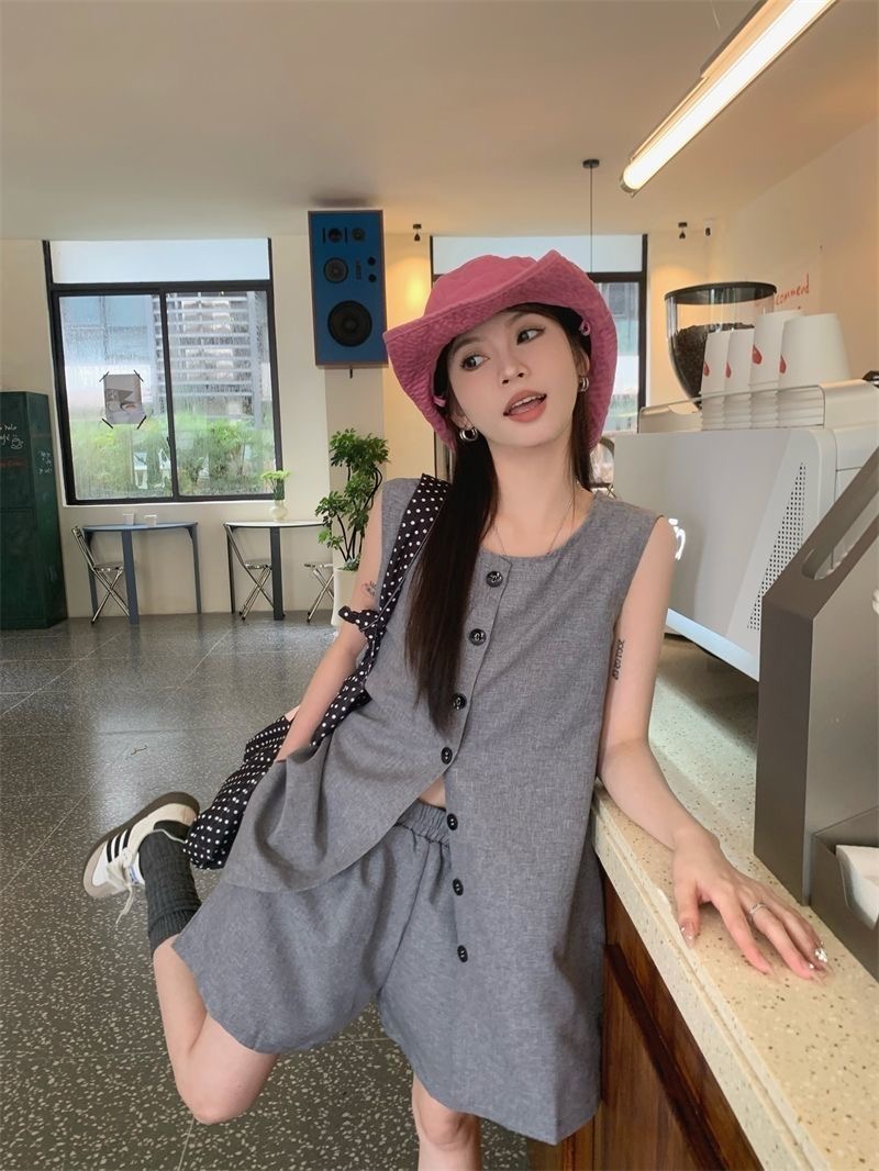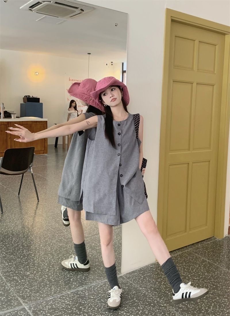 韩系百搭显瘦套装(上衣+短裤)