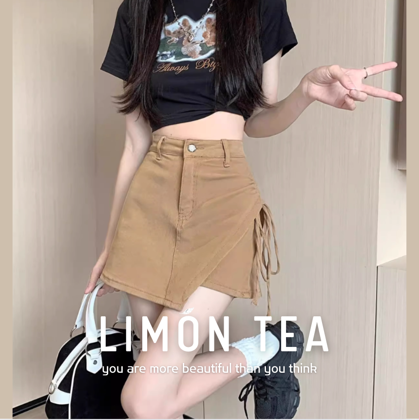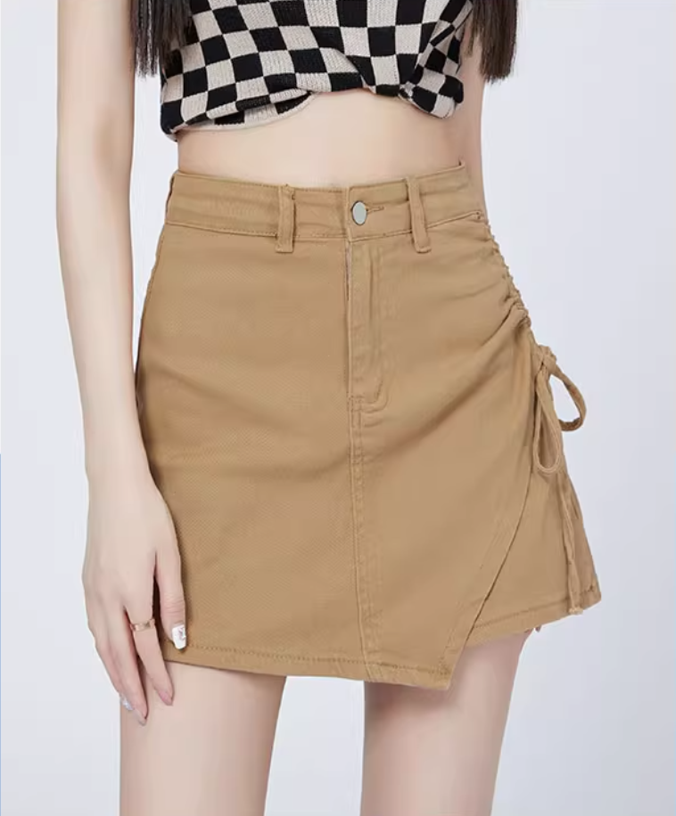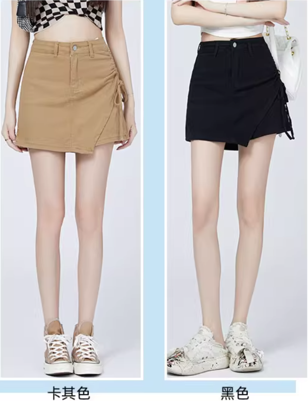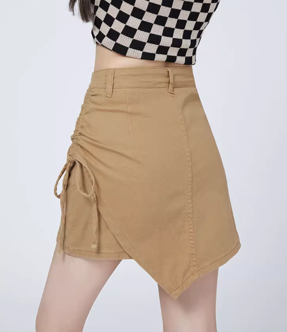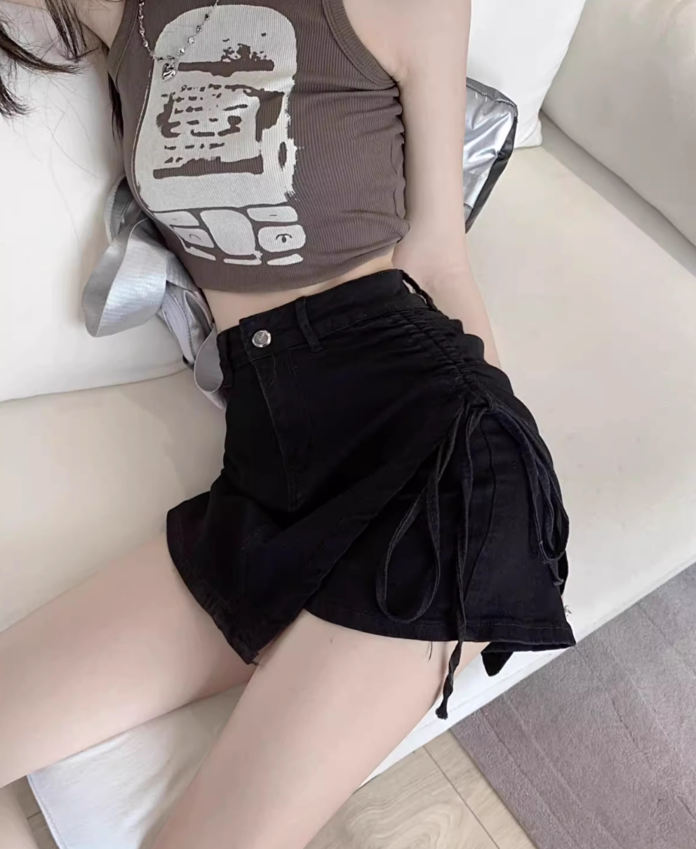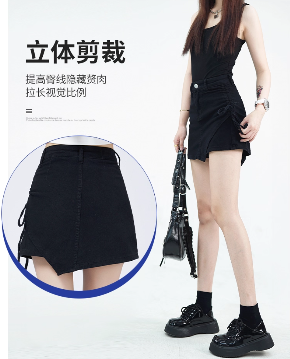 ‘韩系美少女’ 韩版不规则抽绳牛仔短裙(有内衬 防走光)