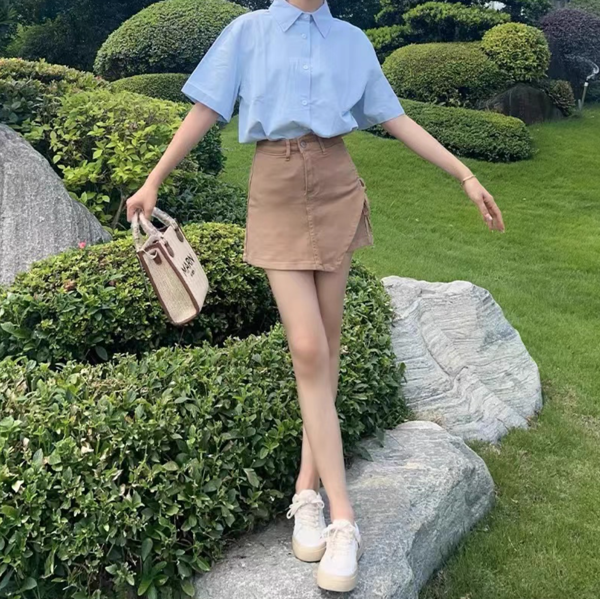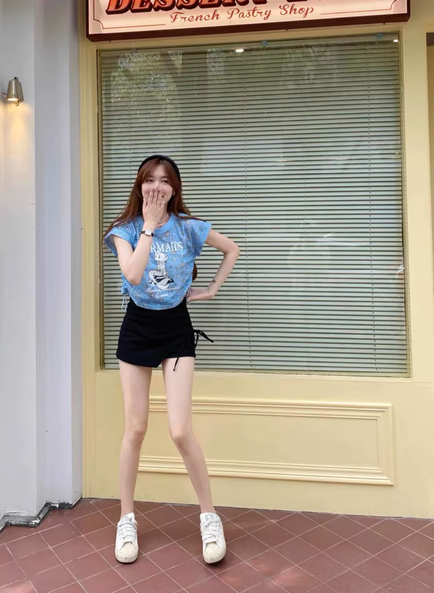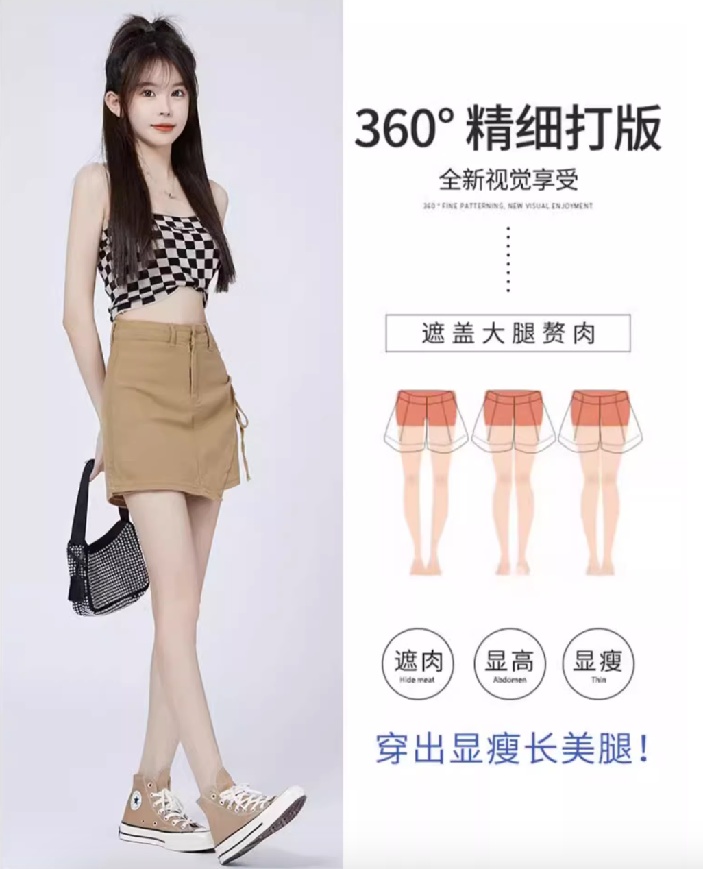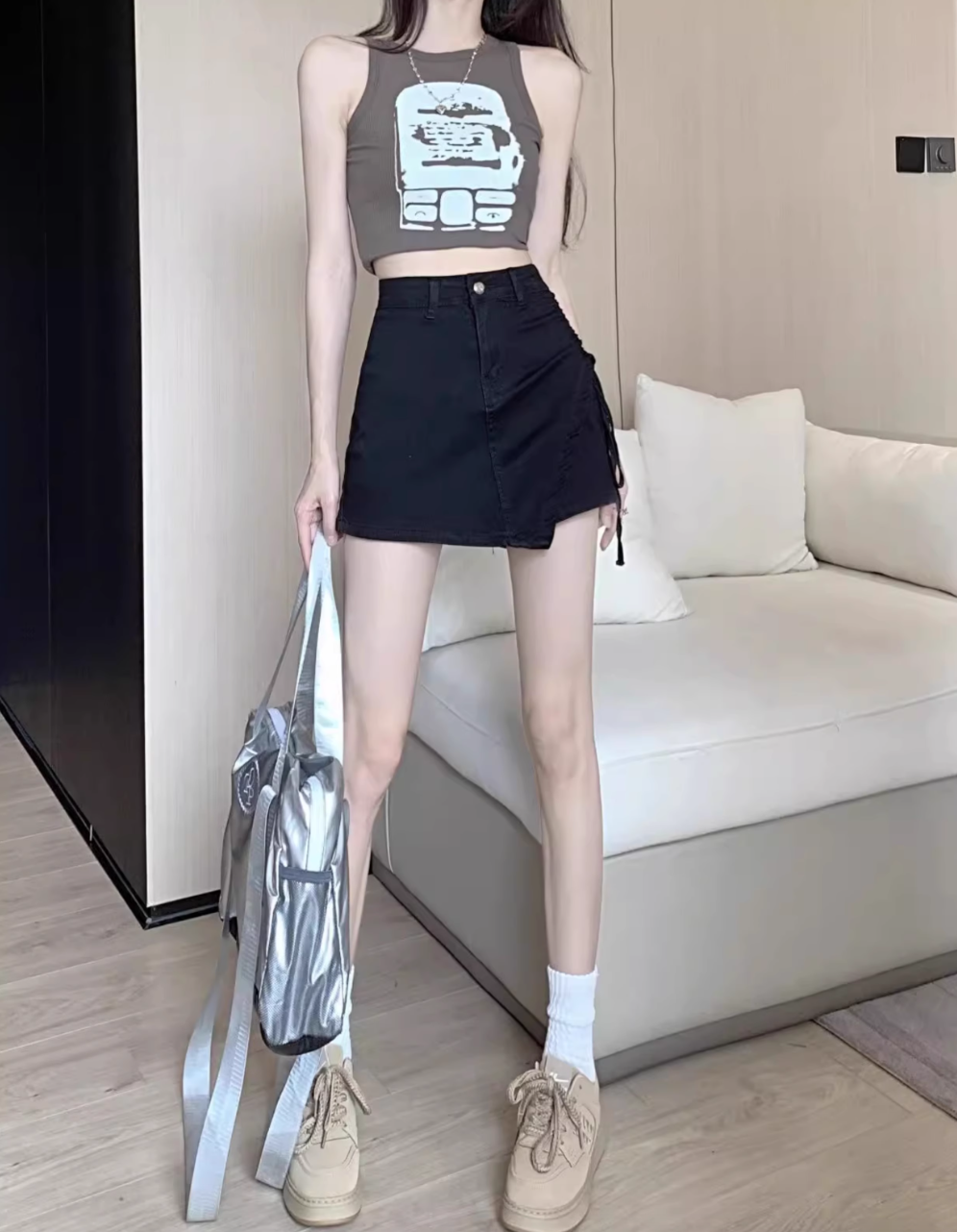 ‘韩系美少女’ 韩版不规则抽绳牛仔短裙(有内衬 防走光)