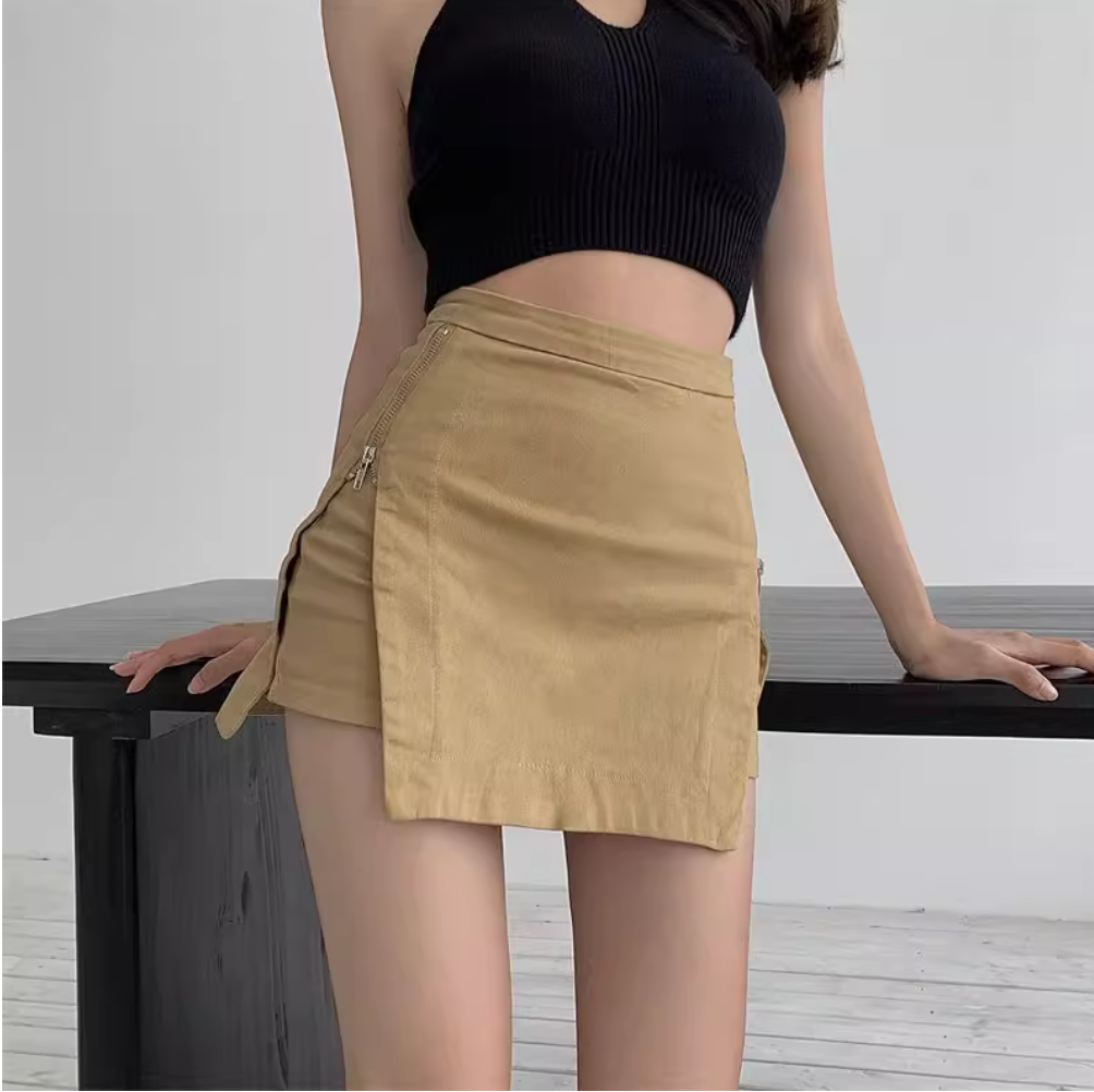 ‘长腿神器’ 高腰拉链设计感包臀裙