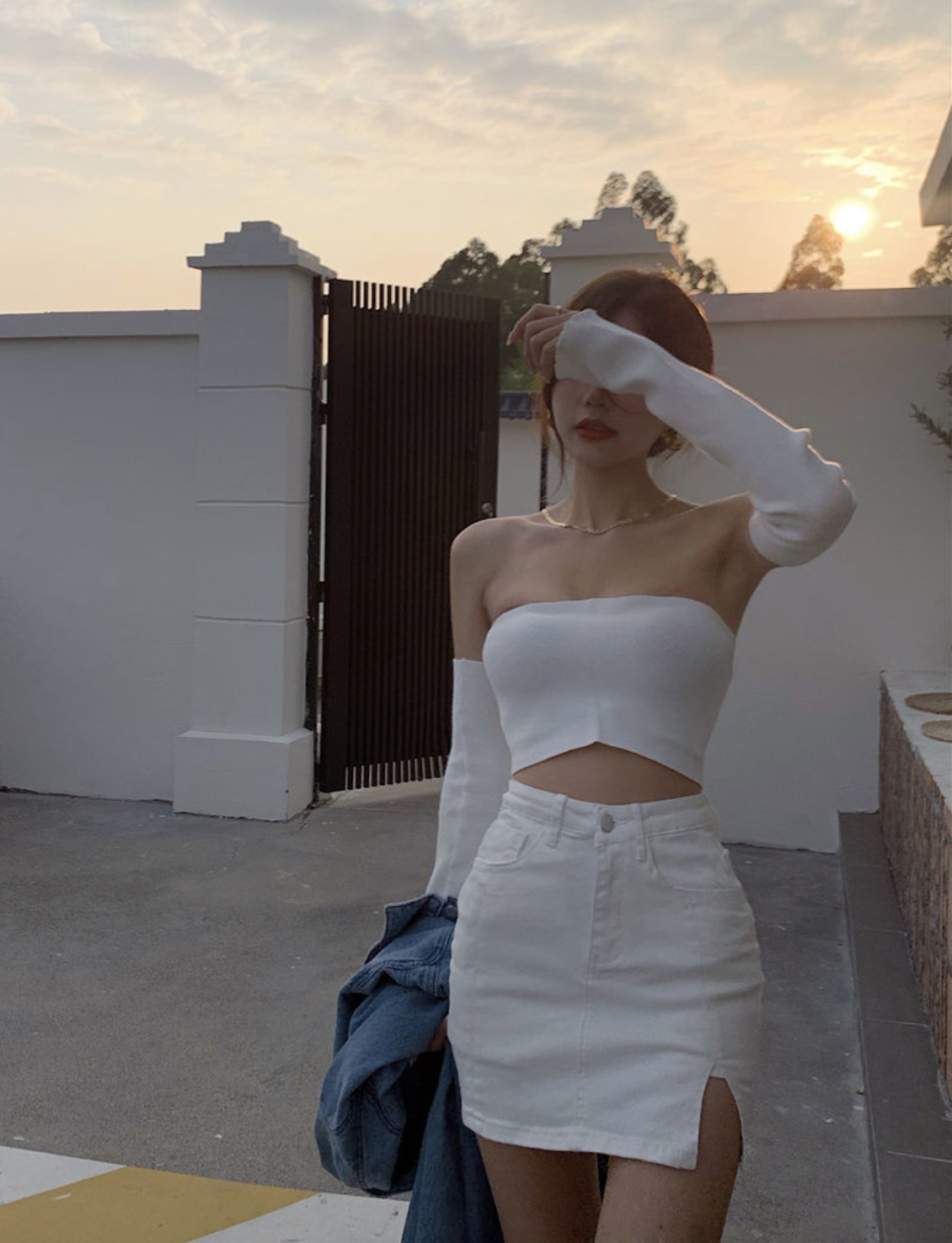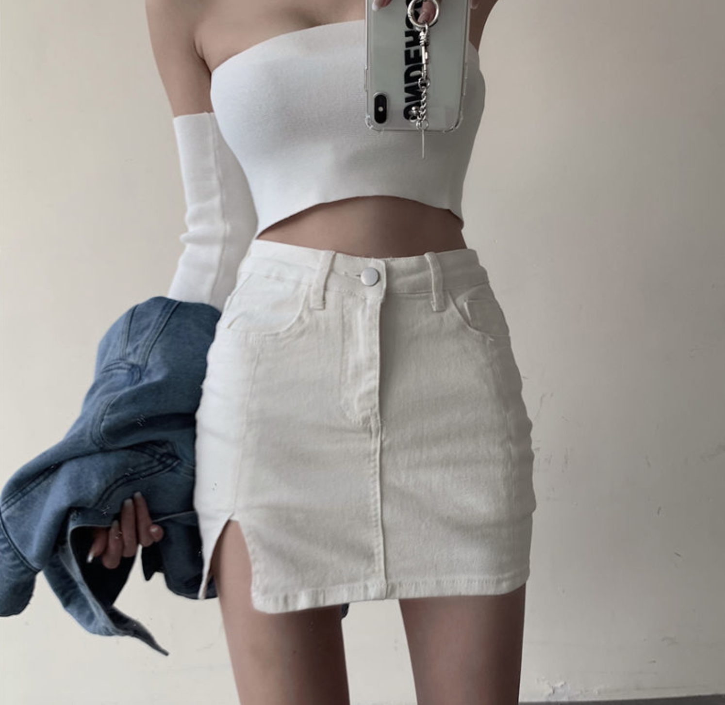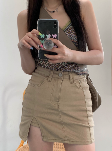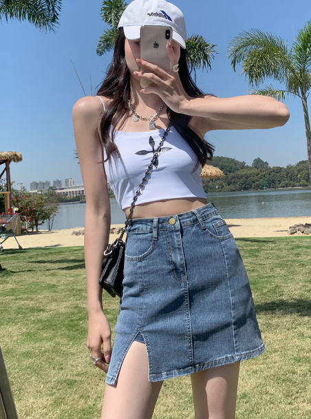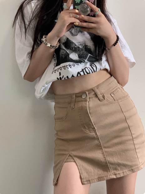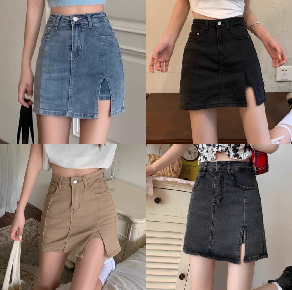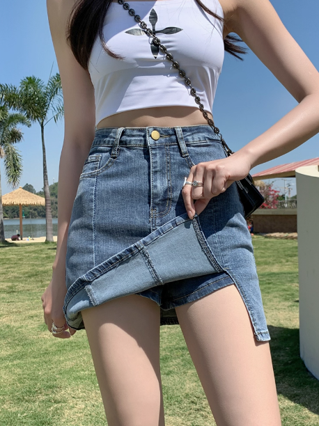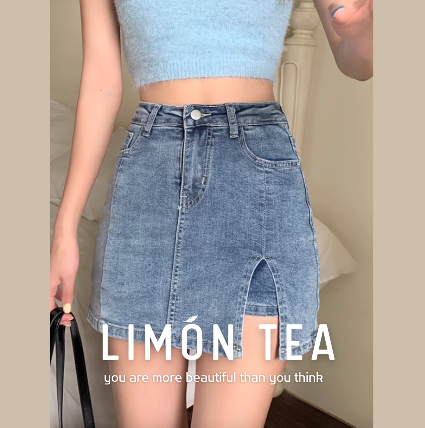 ‘长腿神器’ 高腰开叉牛仔包臀裙(有内衬 防走光)