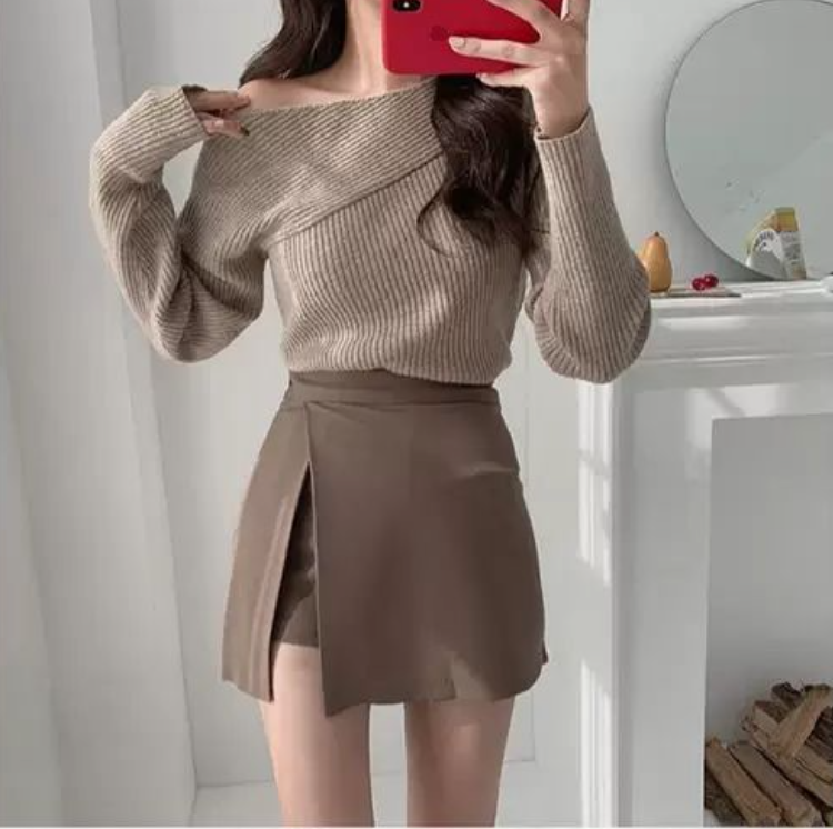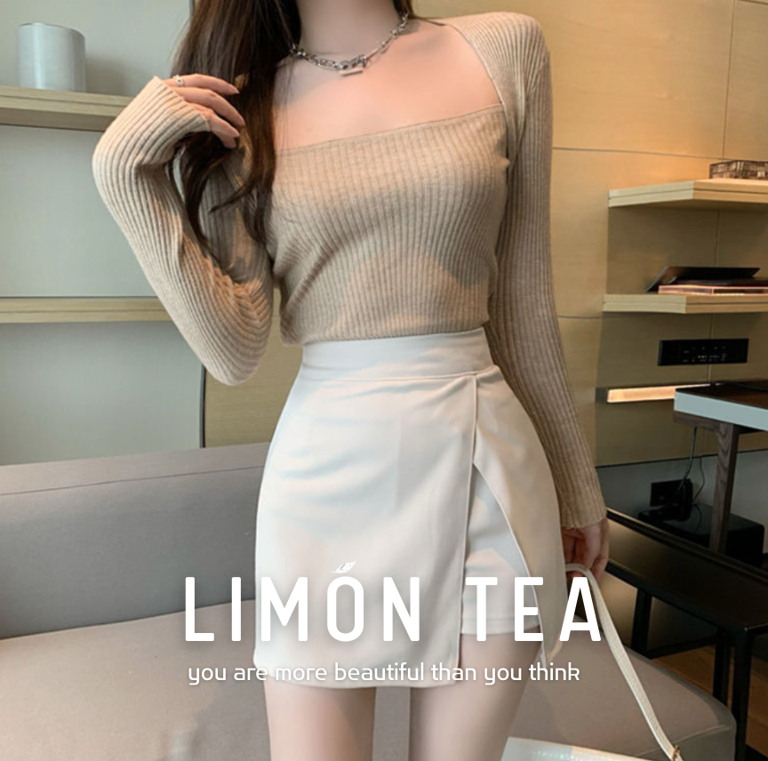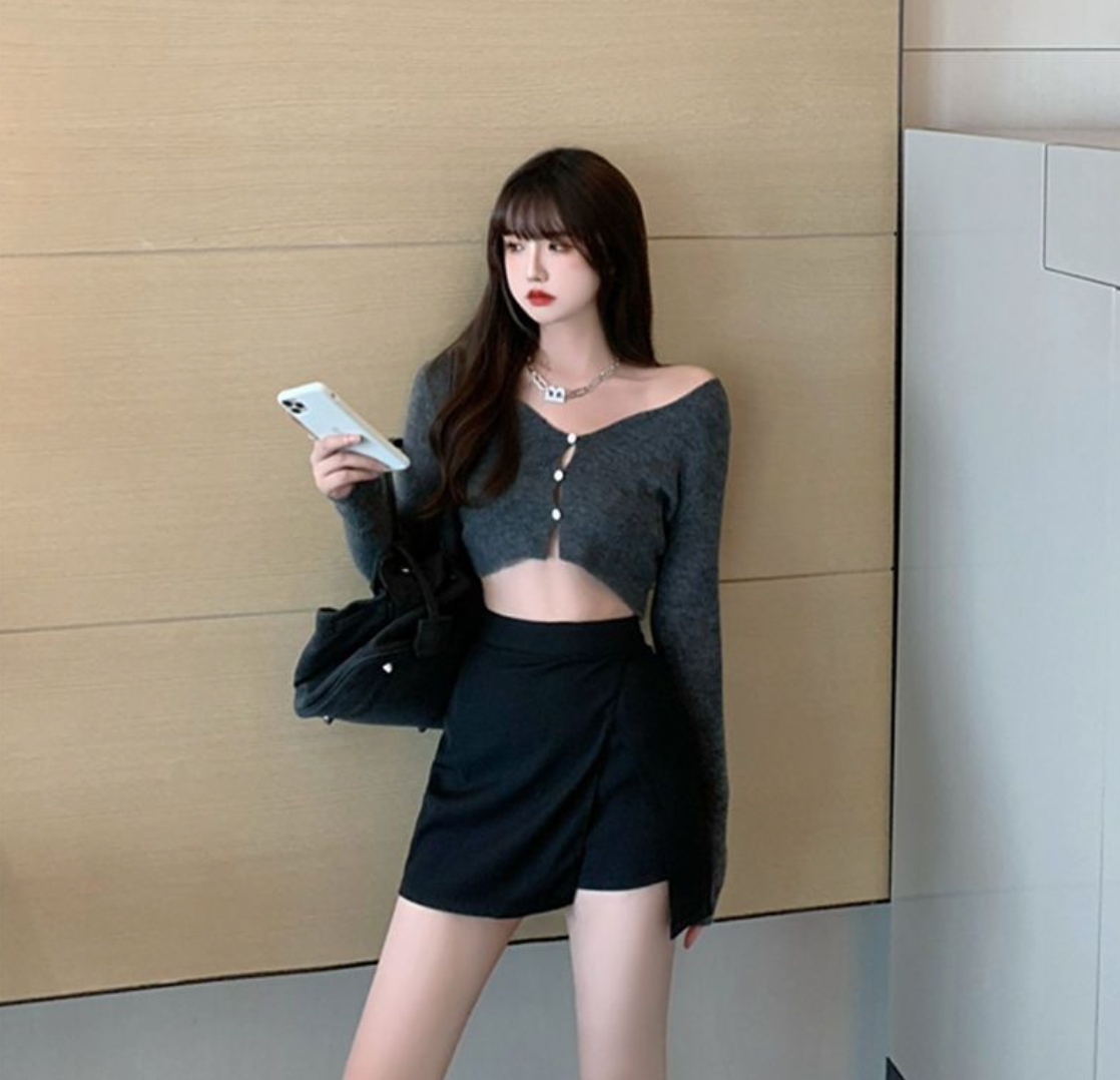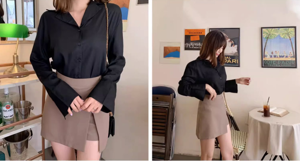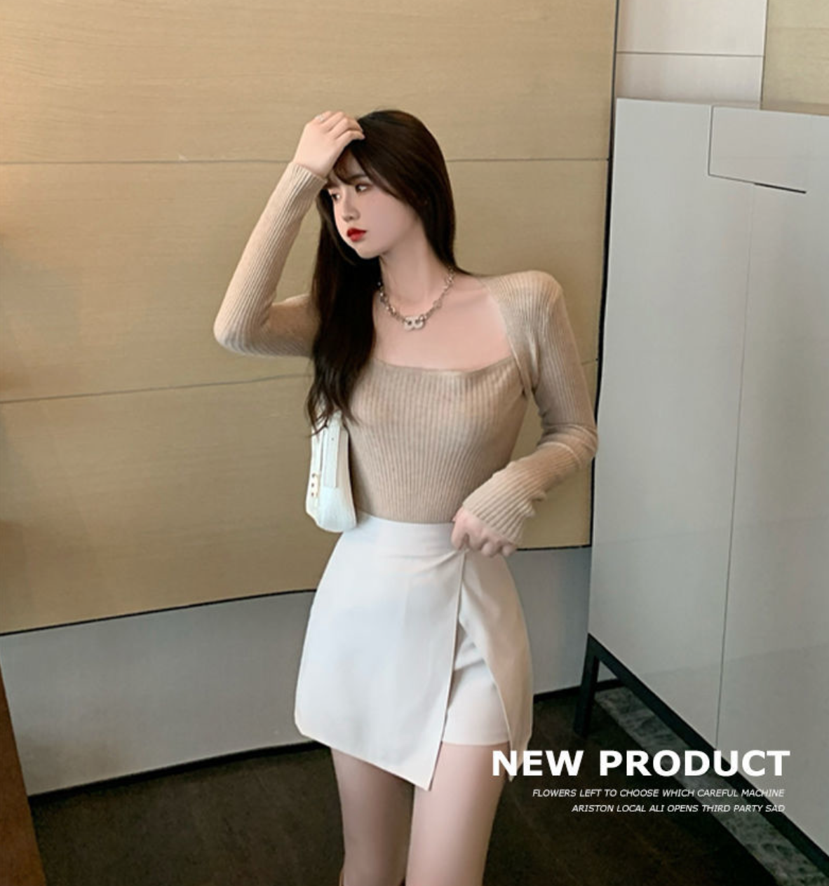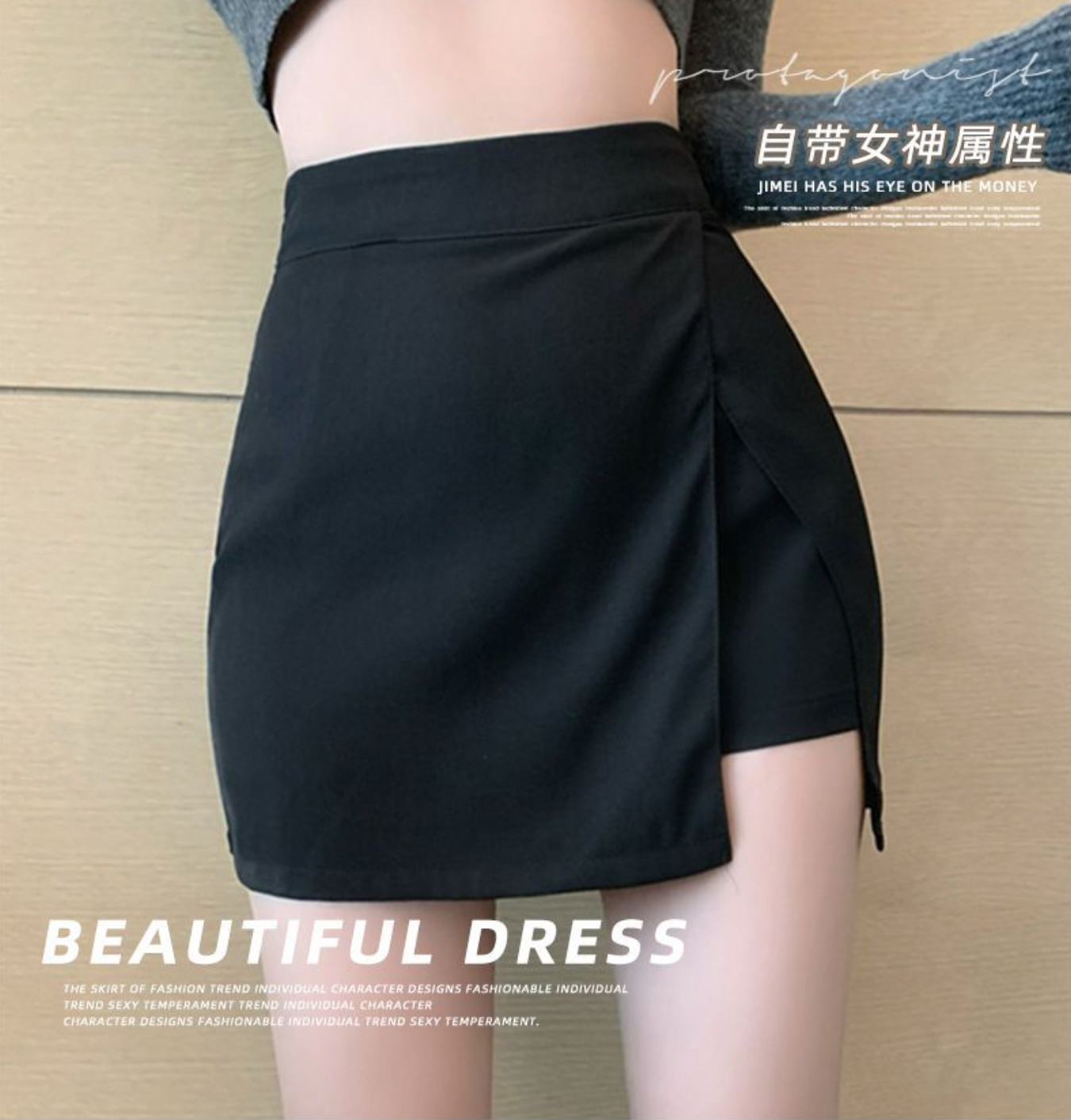 ‘韩系OL’ 超显瘦高腰开叉裤裙(带内衬 防走光)