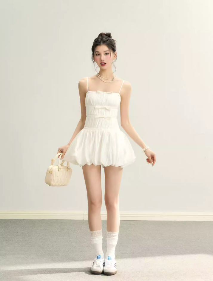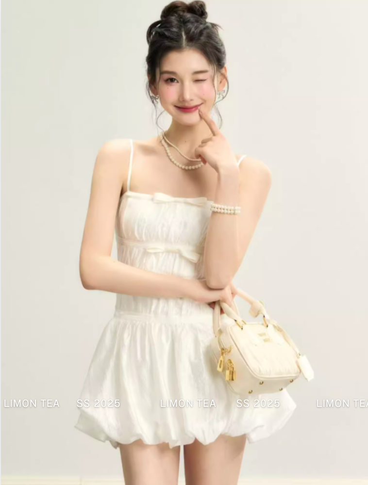 ‘法式浪漫’ 高级甜美气质蝴蝶结连衣裙