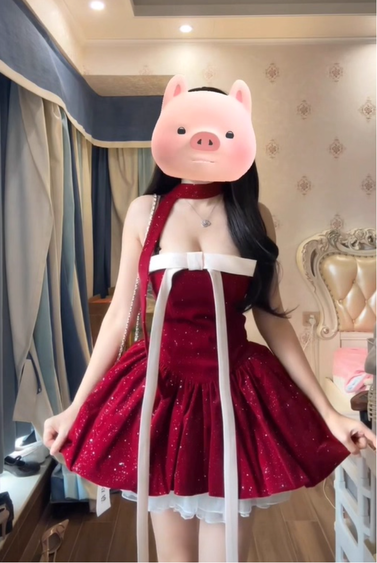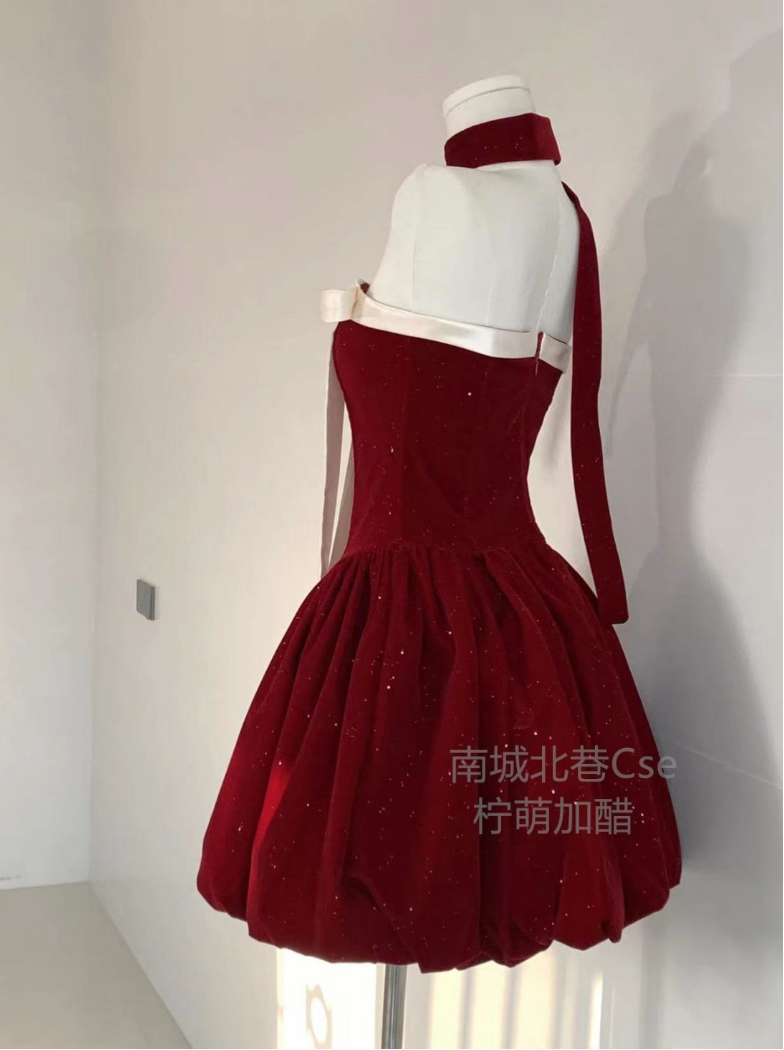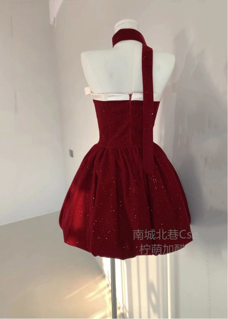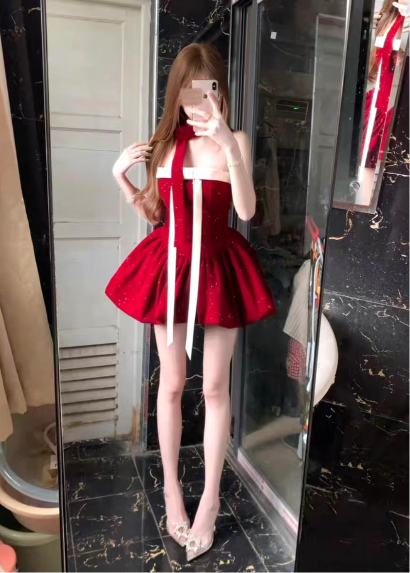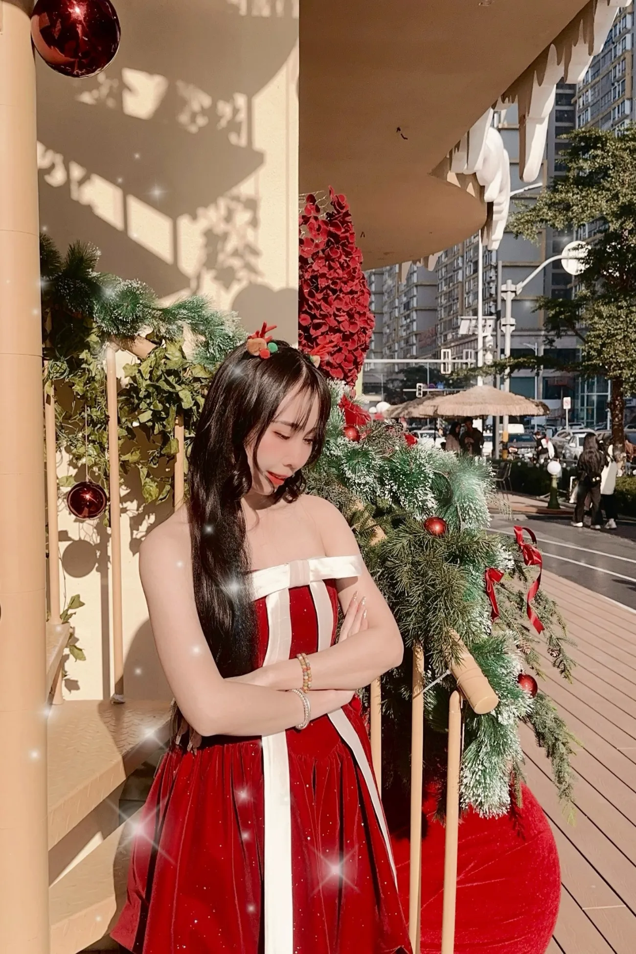 ‘首尔圣诞’ 蝴蝶结红丝绒花苞裙