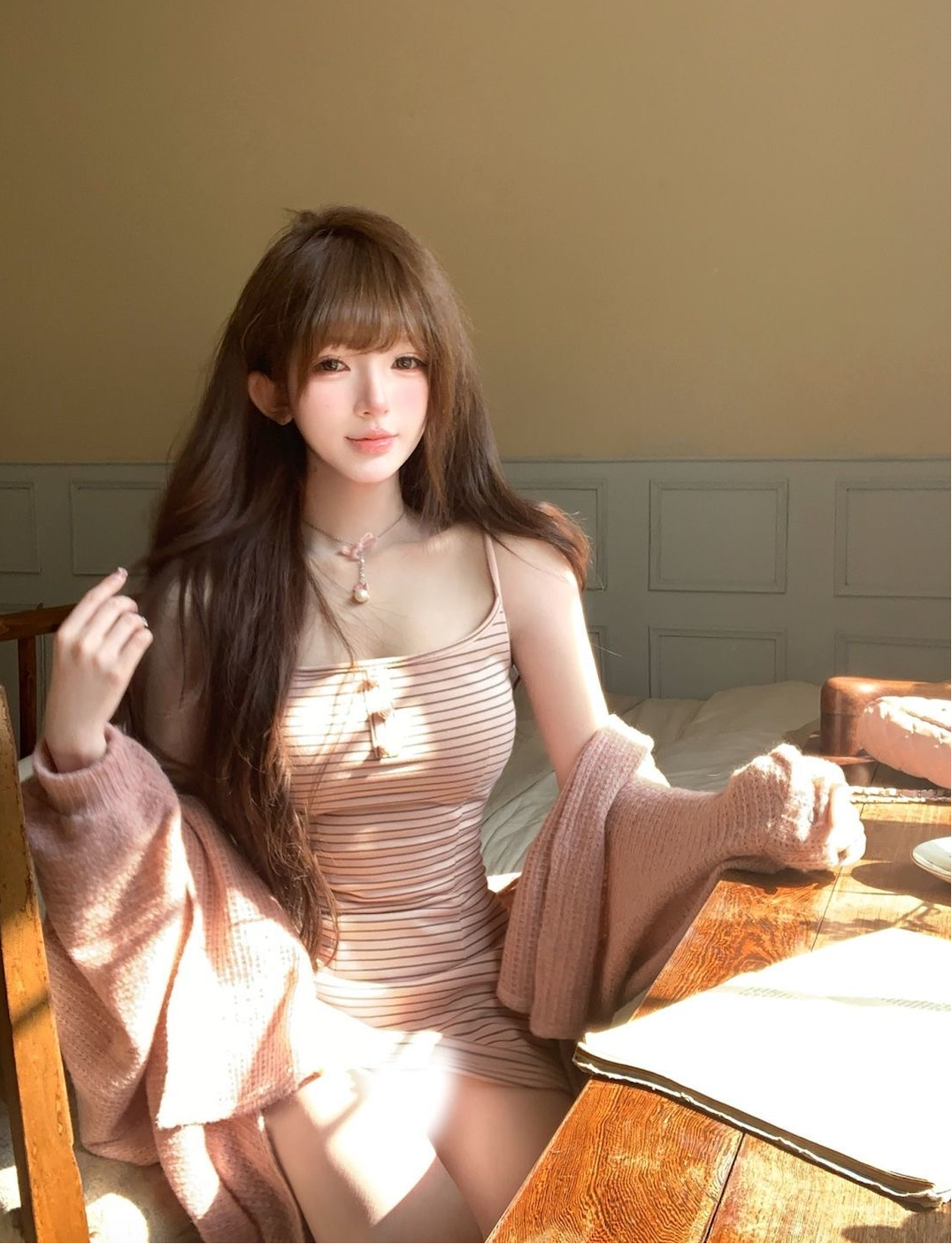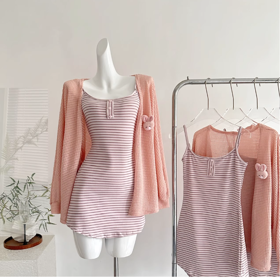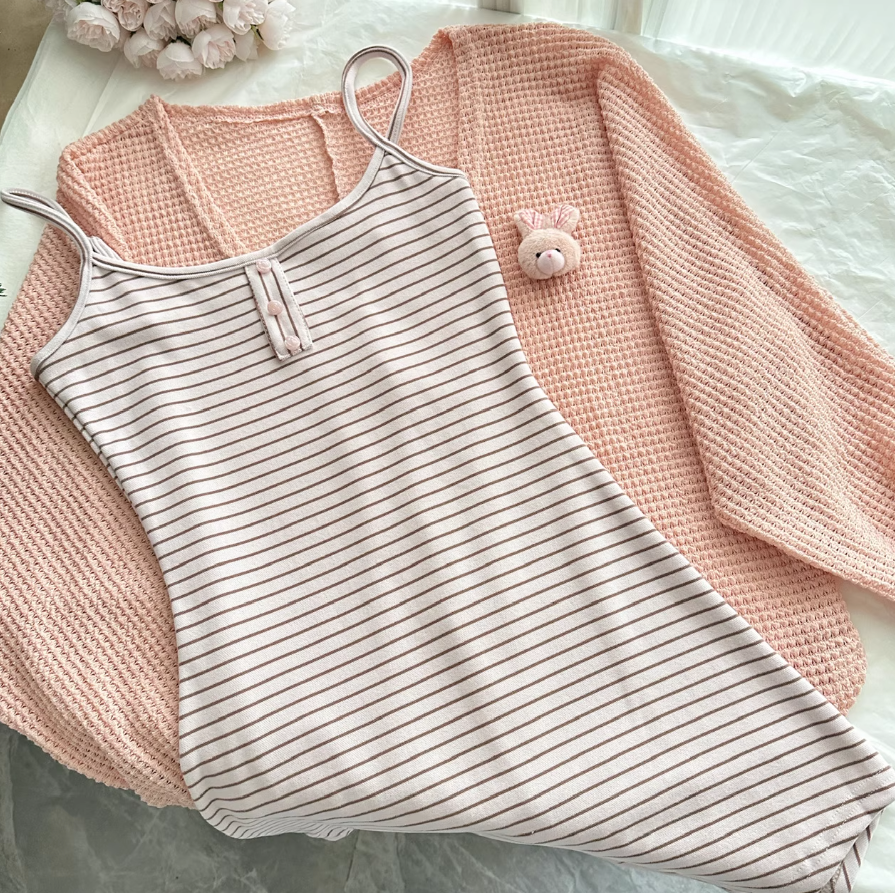 修身弹力的吊带连衣裙,开衫是针织的!
