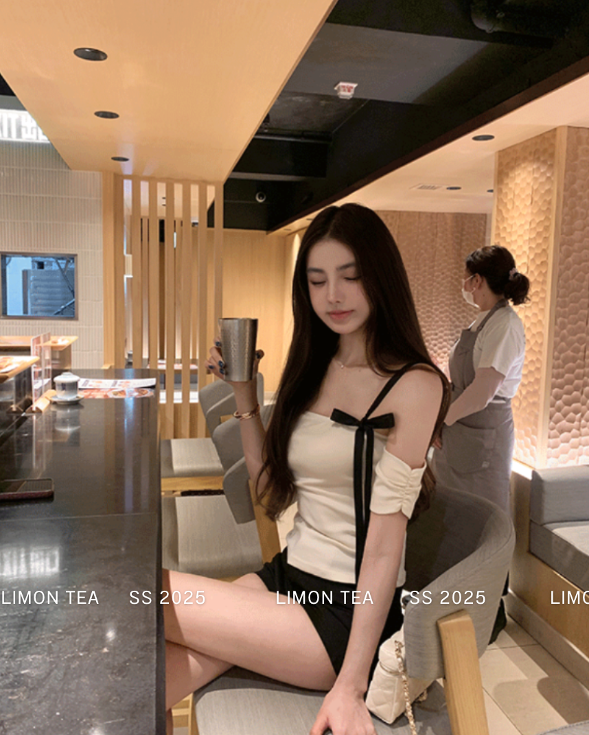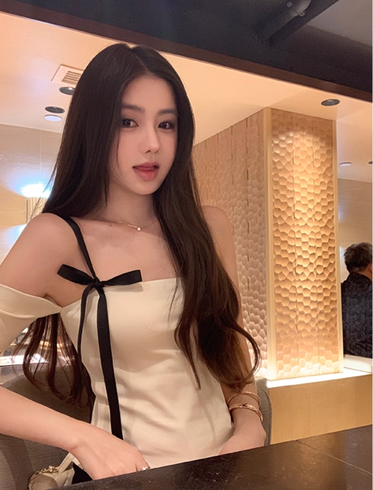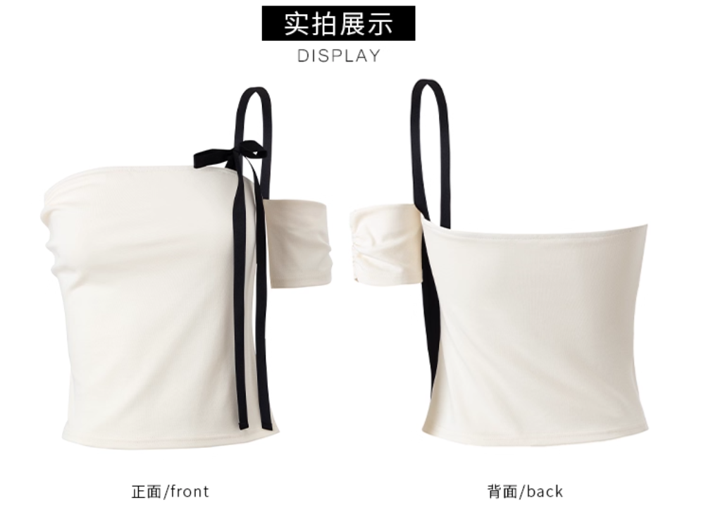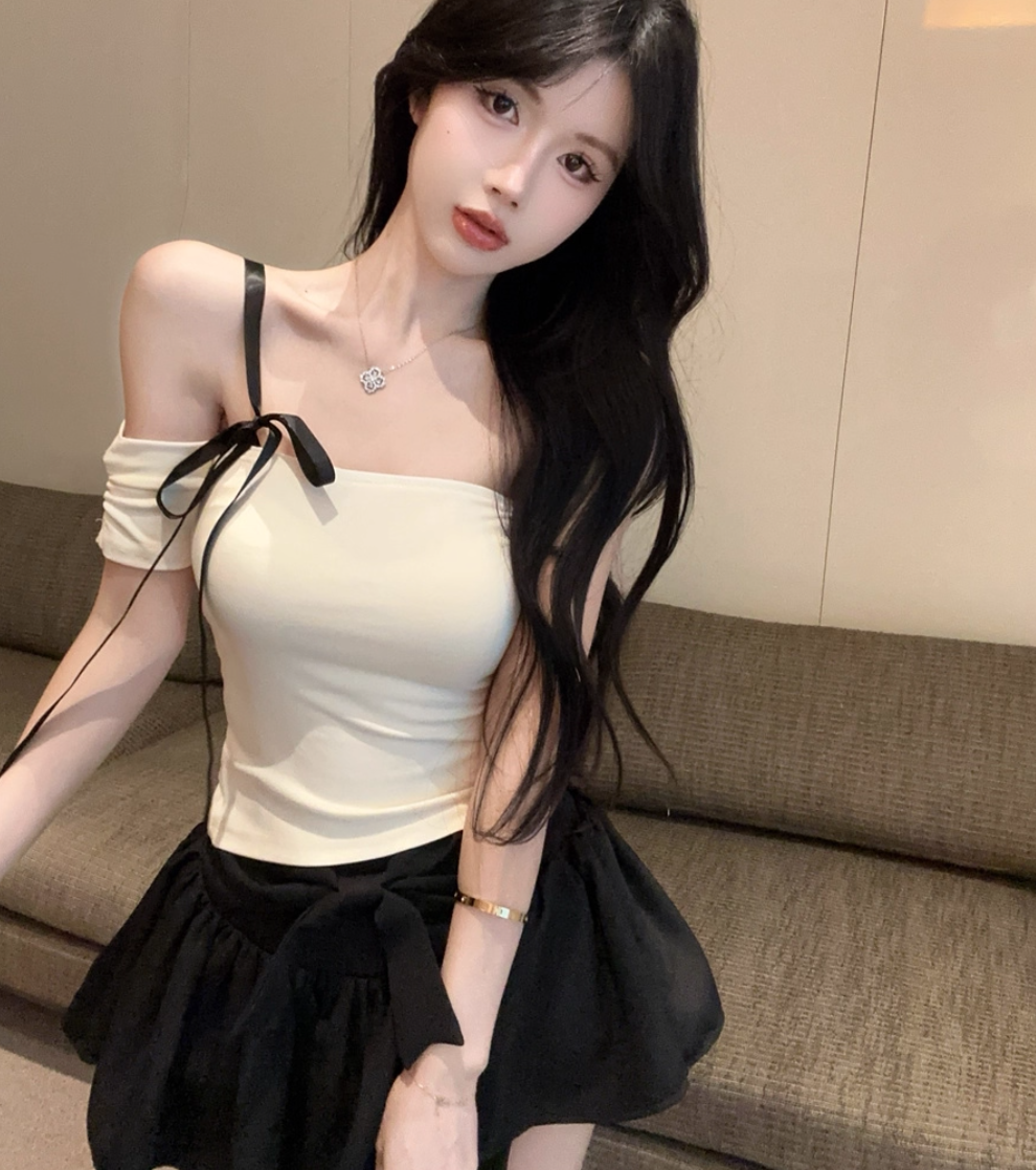 ‘超温柔姐姐’ 一字肩蝴蝶结吊带上衣