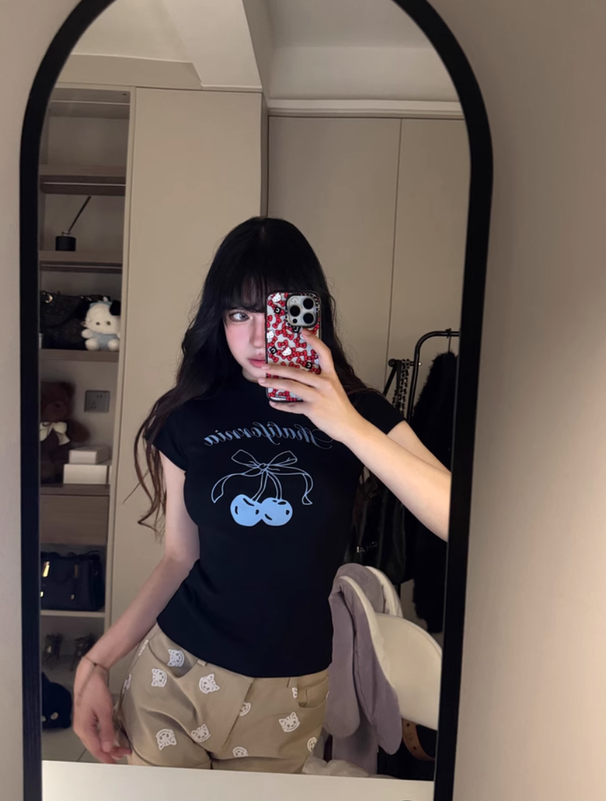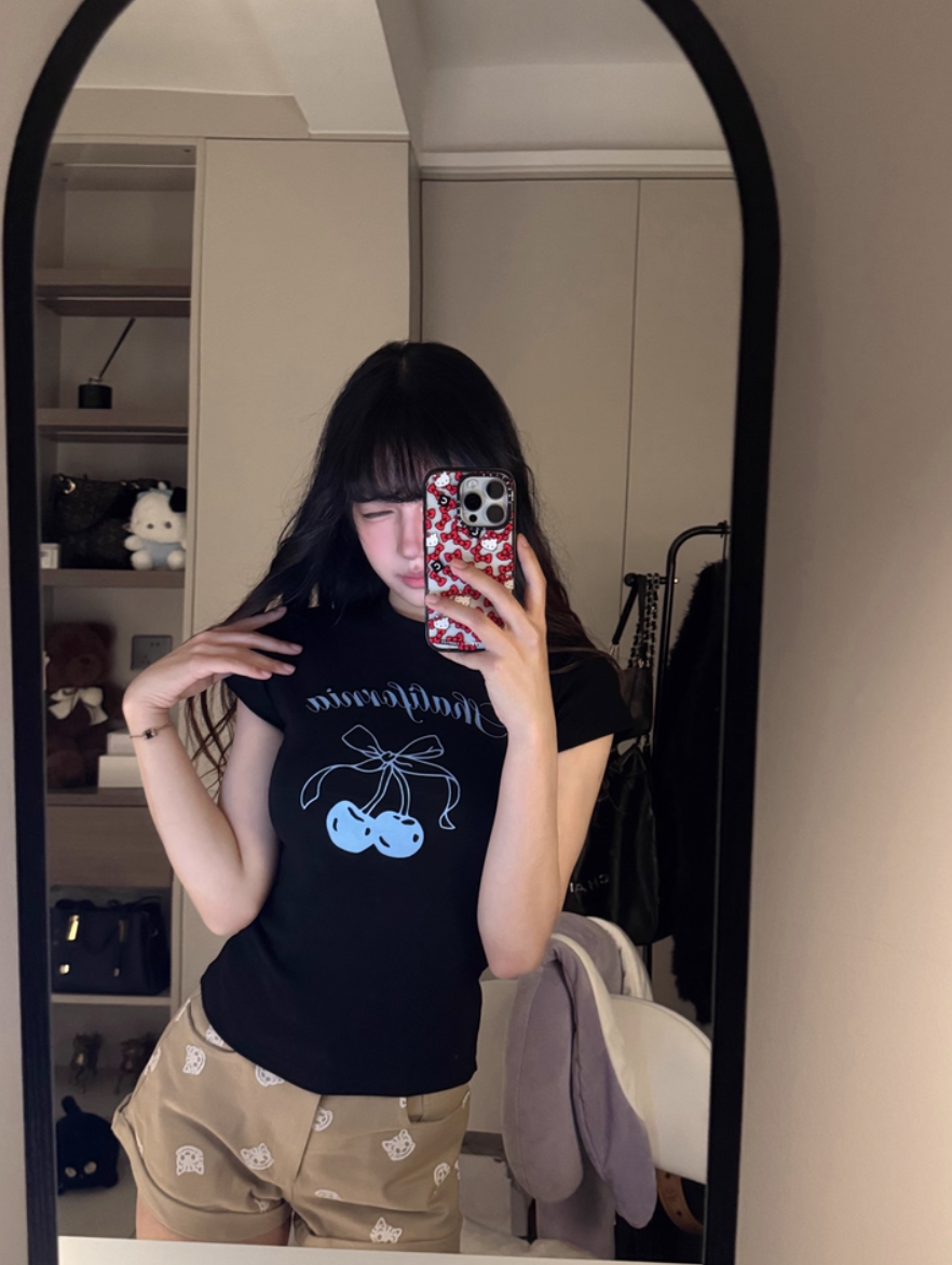 ‘百搭T恤’ 樱桃蝴蝶结甜心T恤