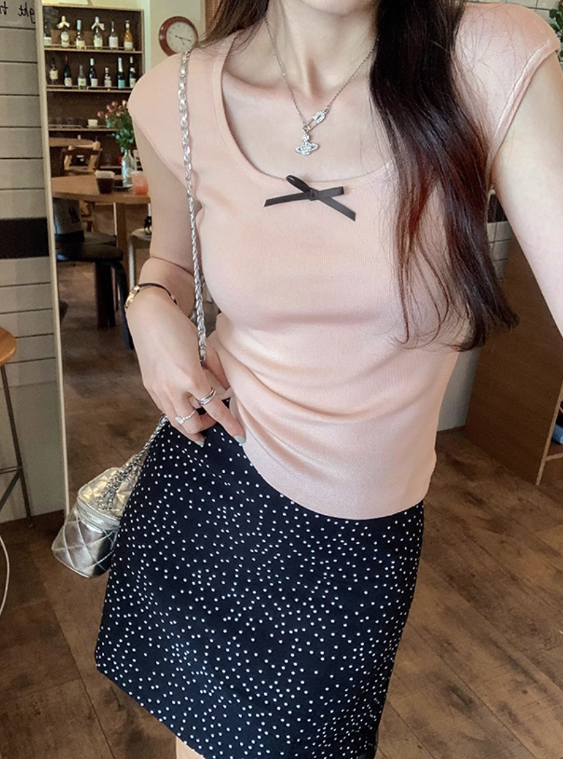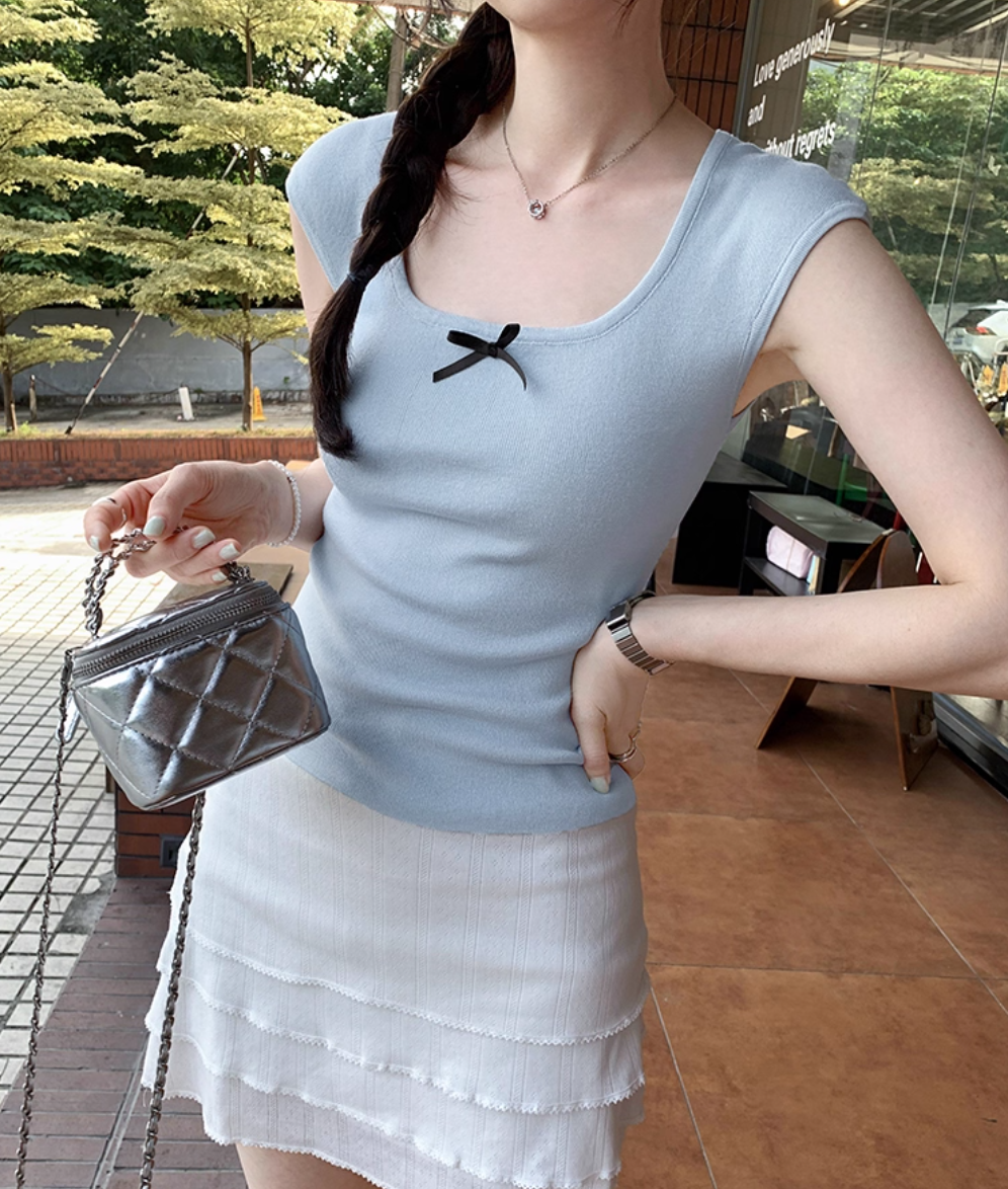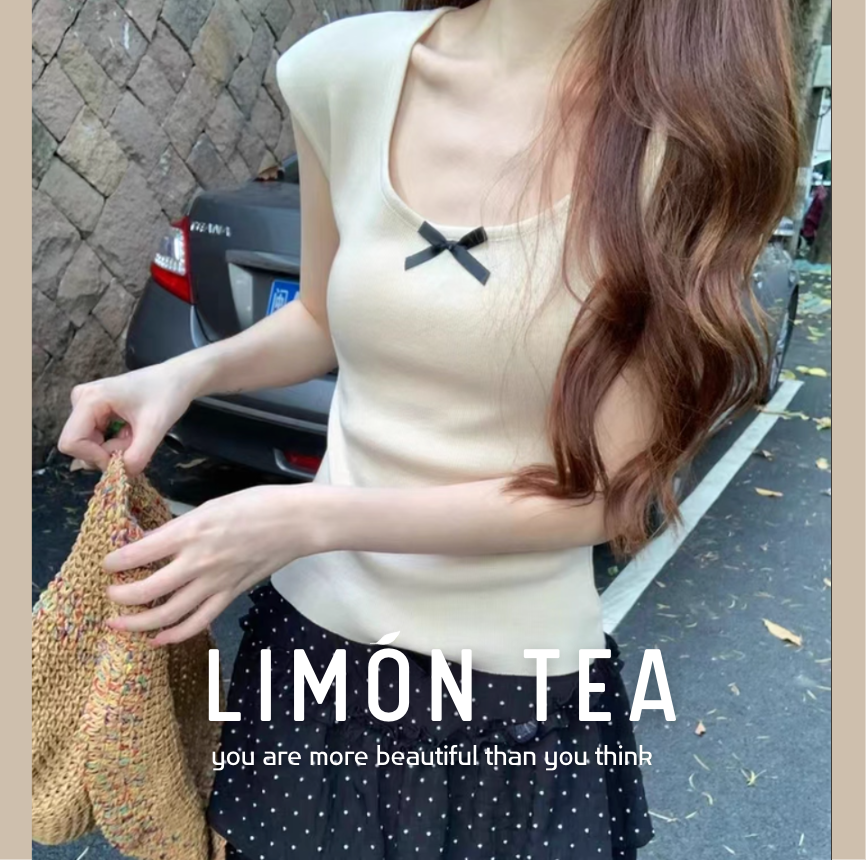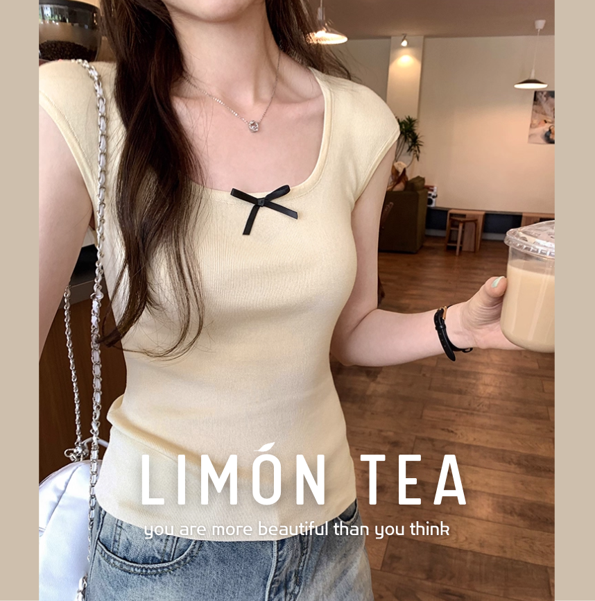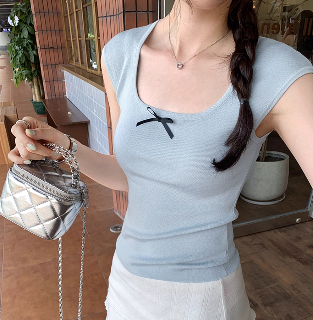 ‘韩系温柔’ 蝴蝶结小飞袖上衣
