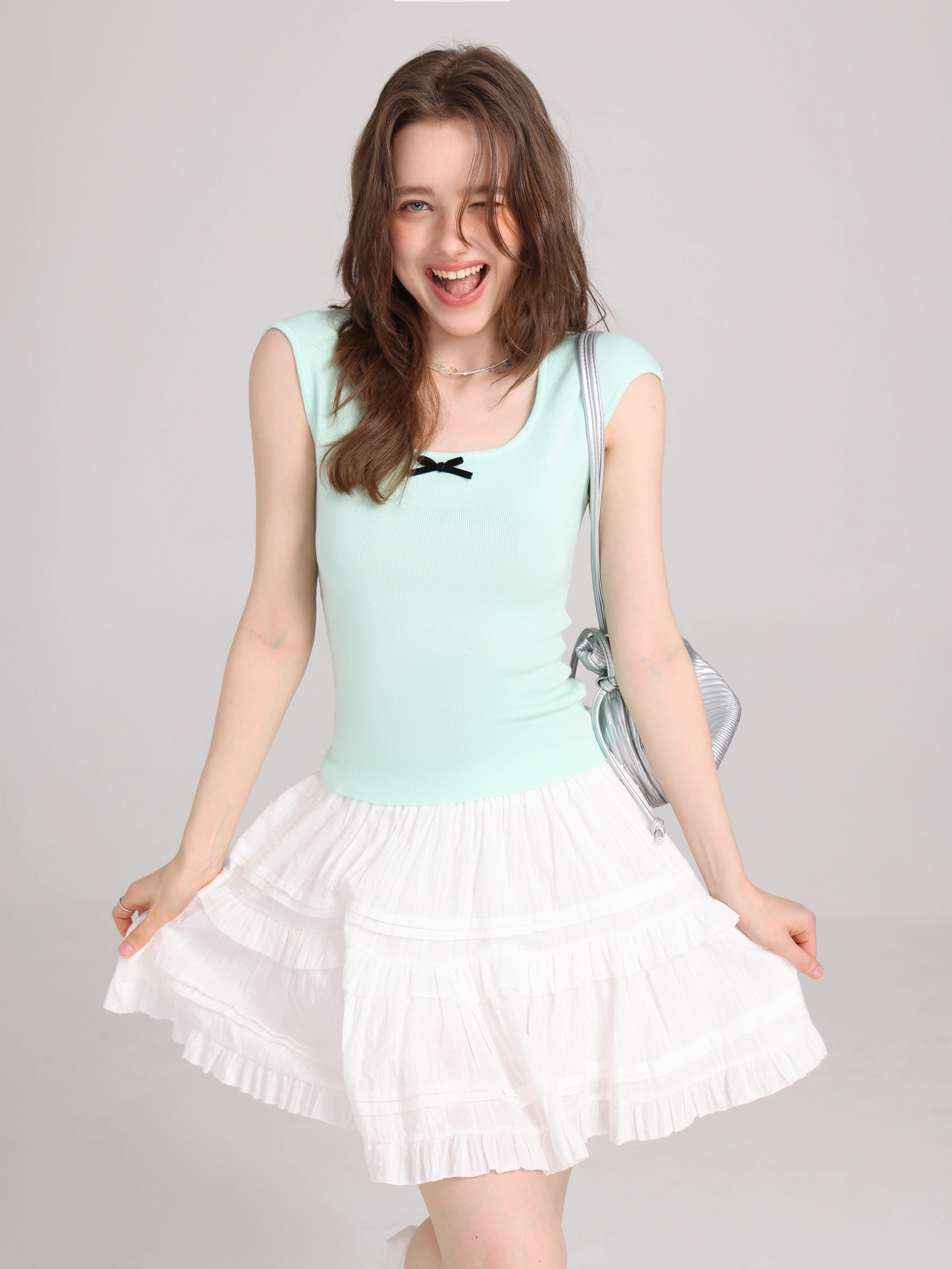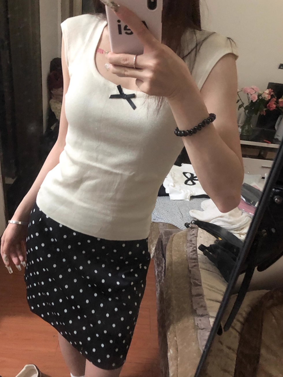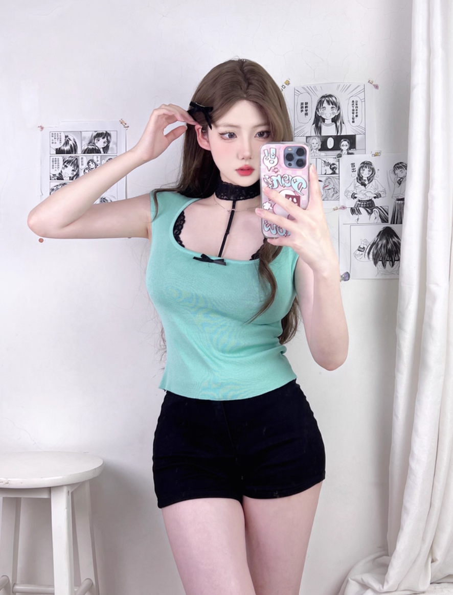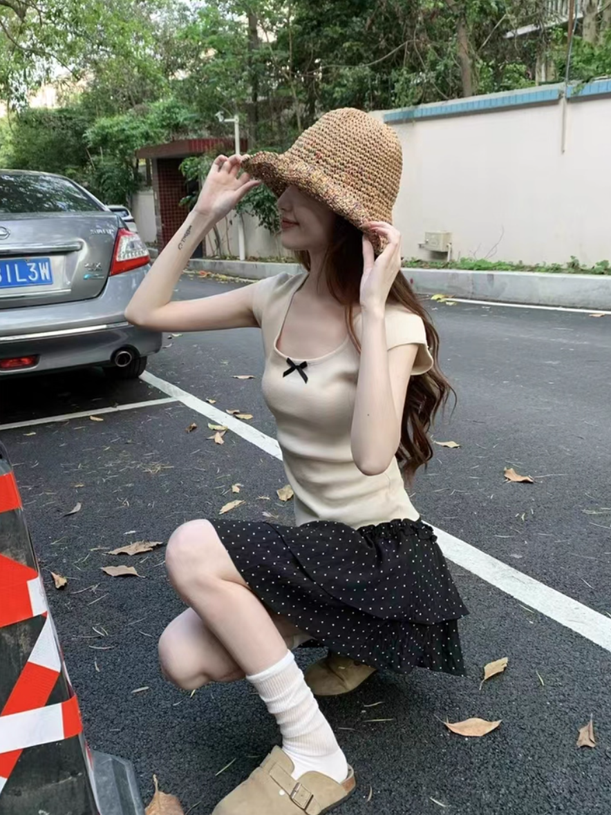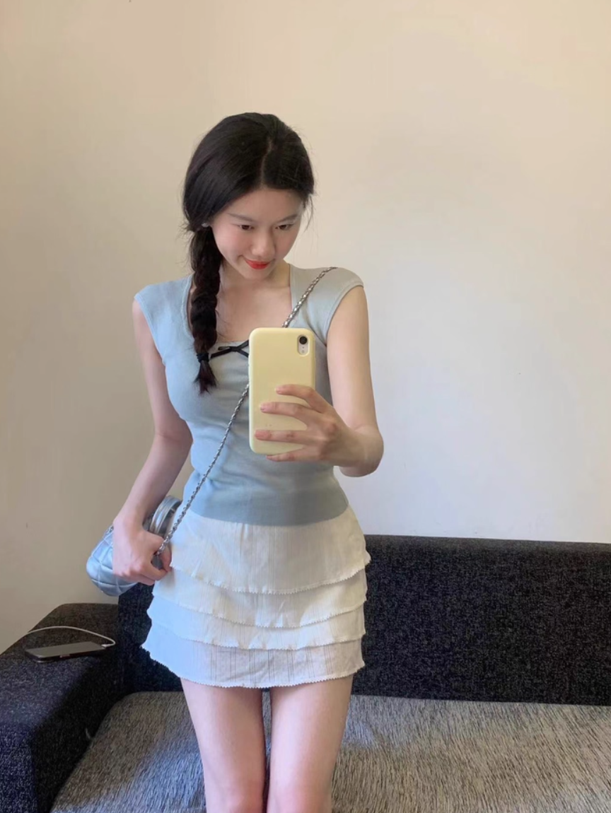 ‘韩系温柔’ 蝴蝶结小飞袖上衣