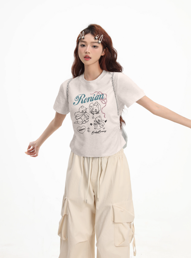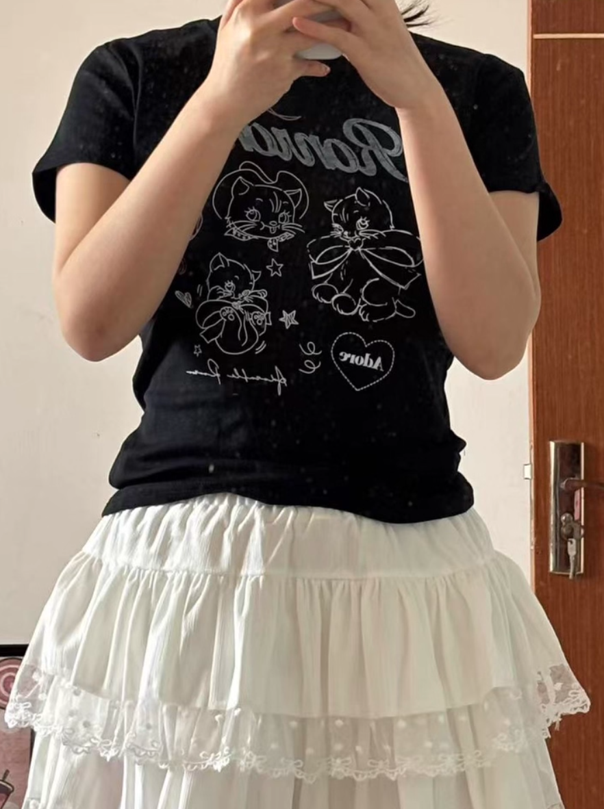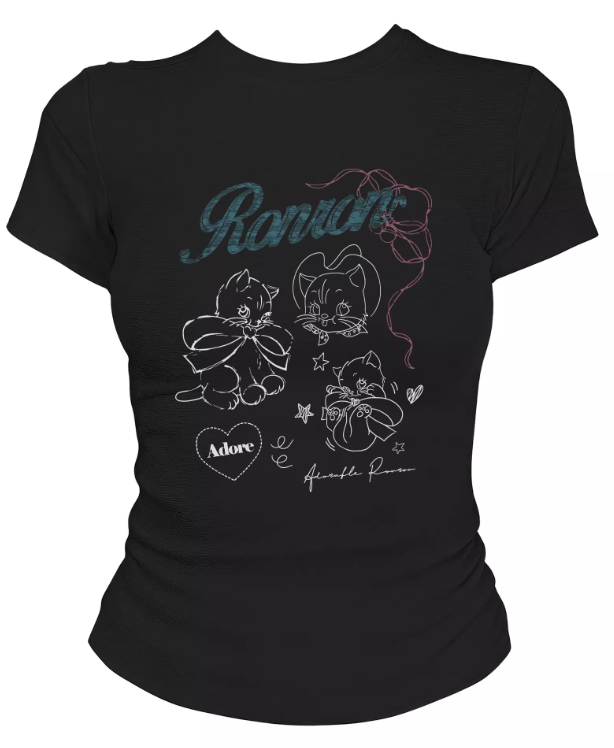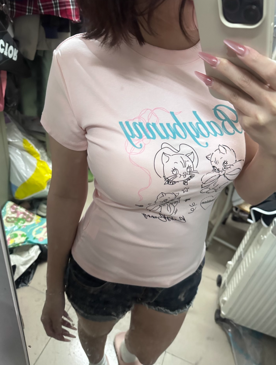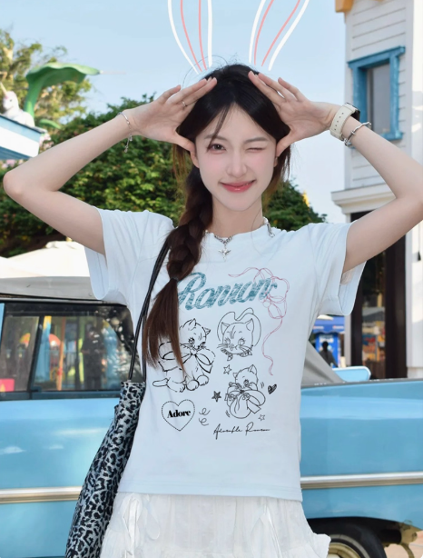 ‘百搭T恤’ 超可爱蝴蝶结小猫咪T恤