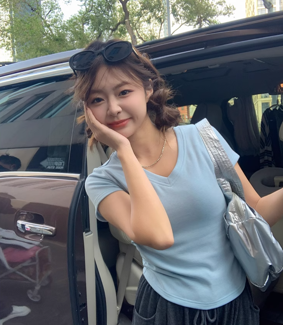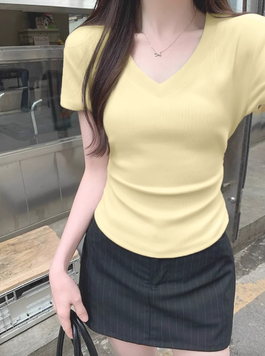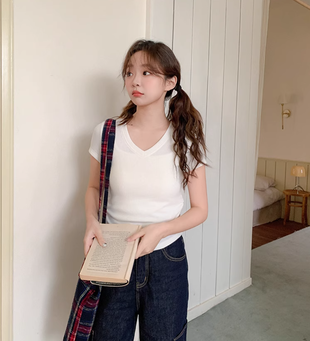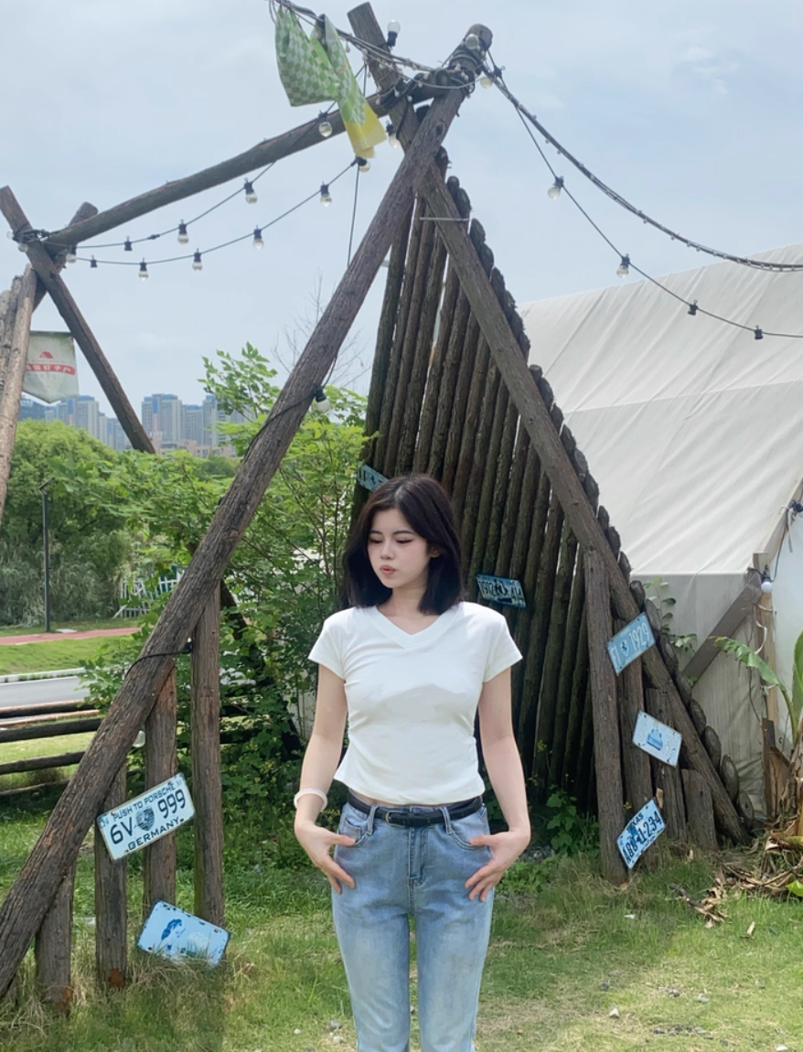 现货|‘百搭T恤’ 温柔修身v领T恤