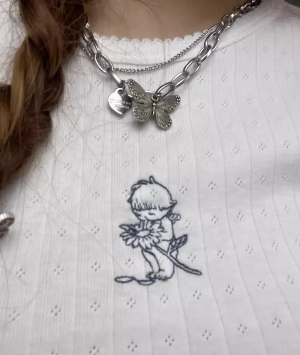 ‘百搭T恤’ 小天使雏菊刺绣T恤