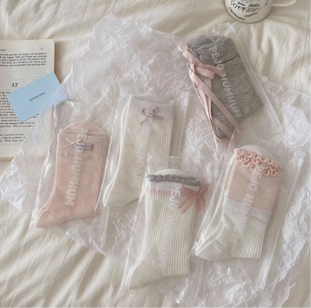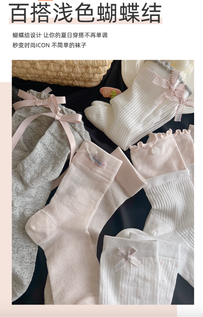 【5双】百搭少女蝴蝶结袜子