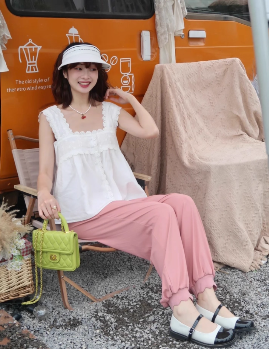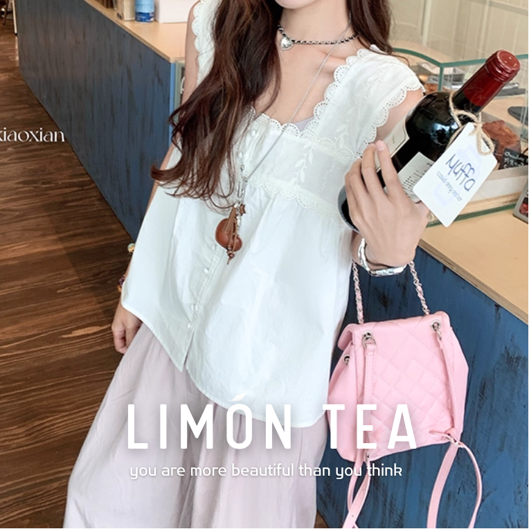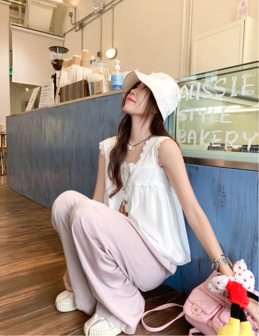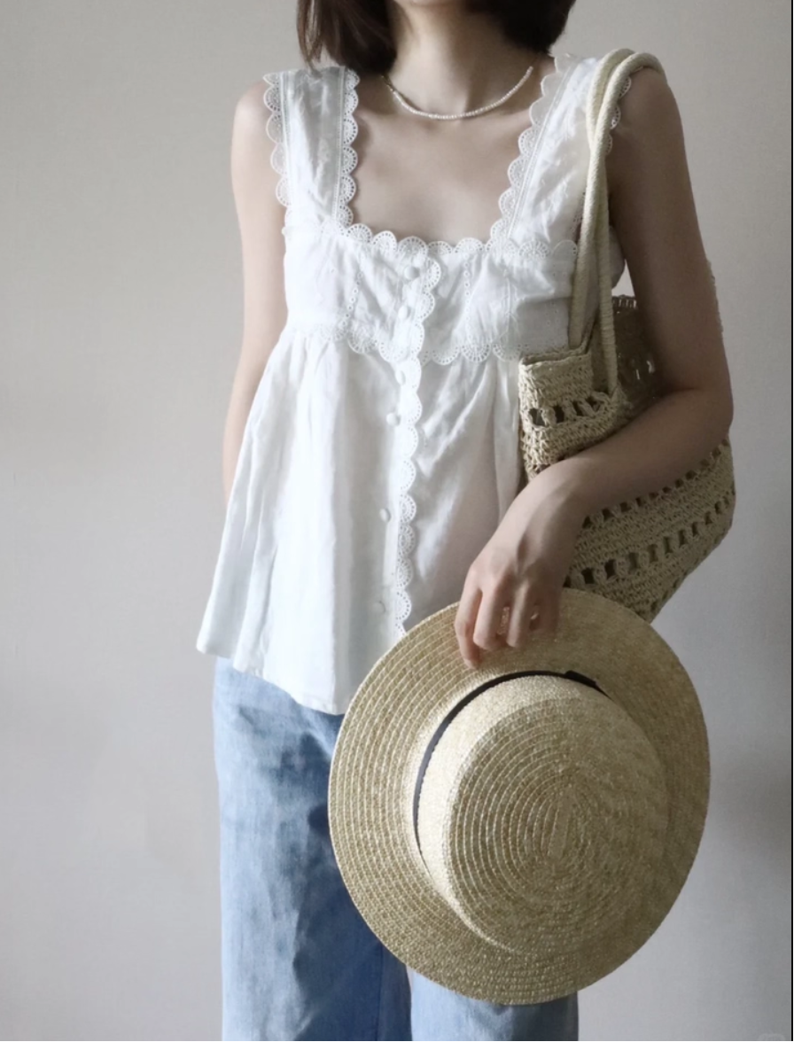 ‘纯欲少女’ 刺绣方领背心上衣