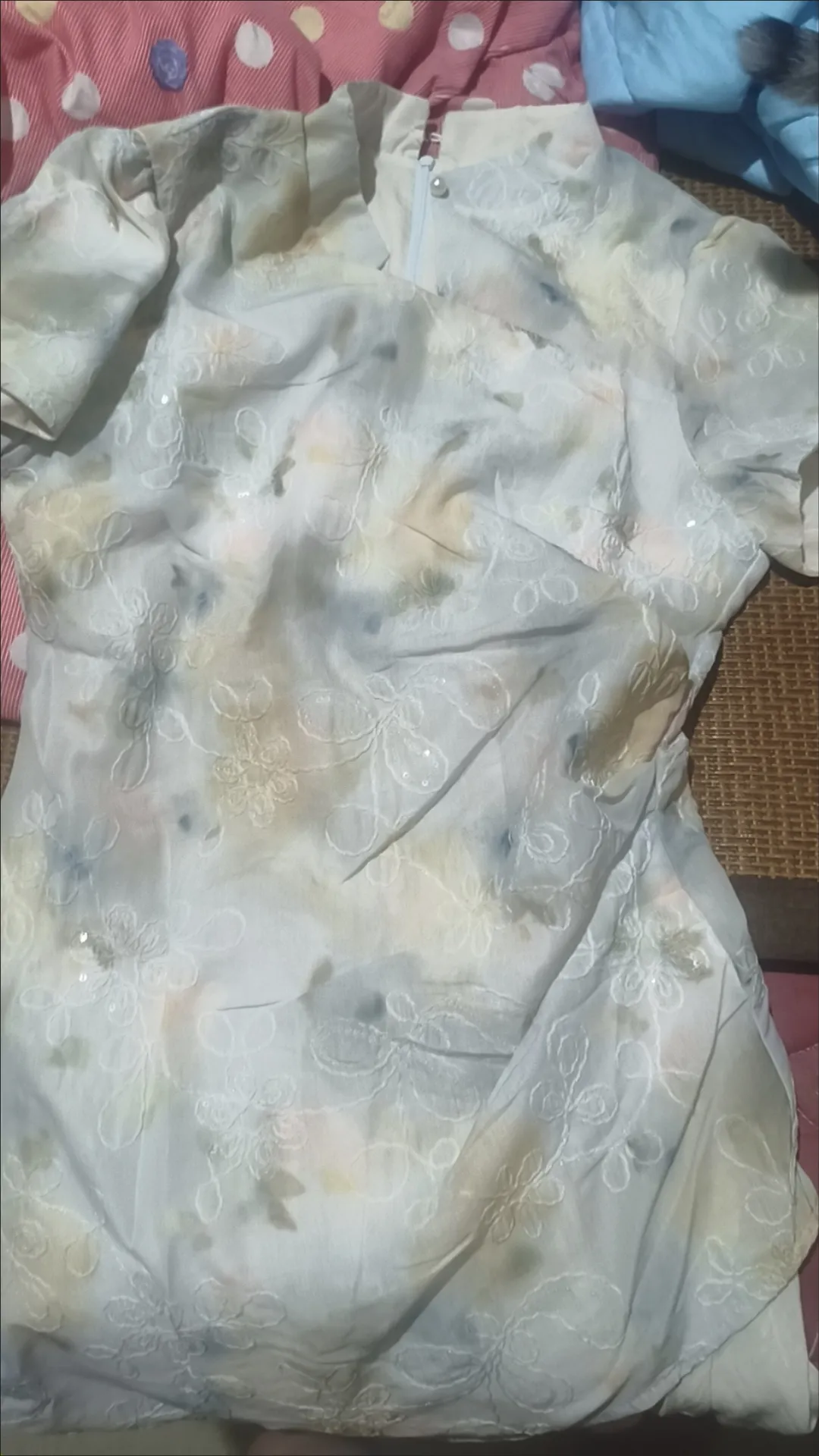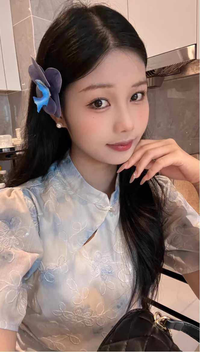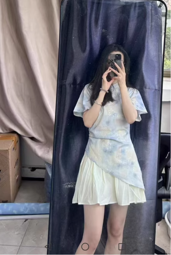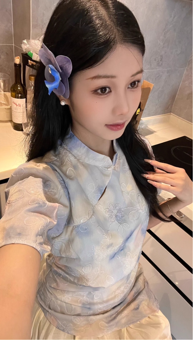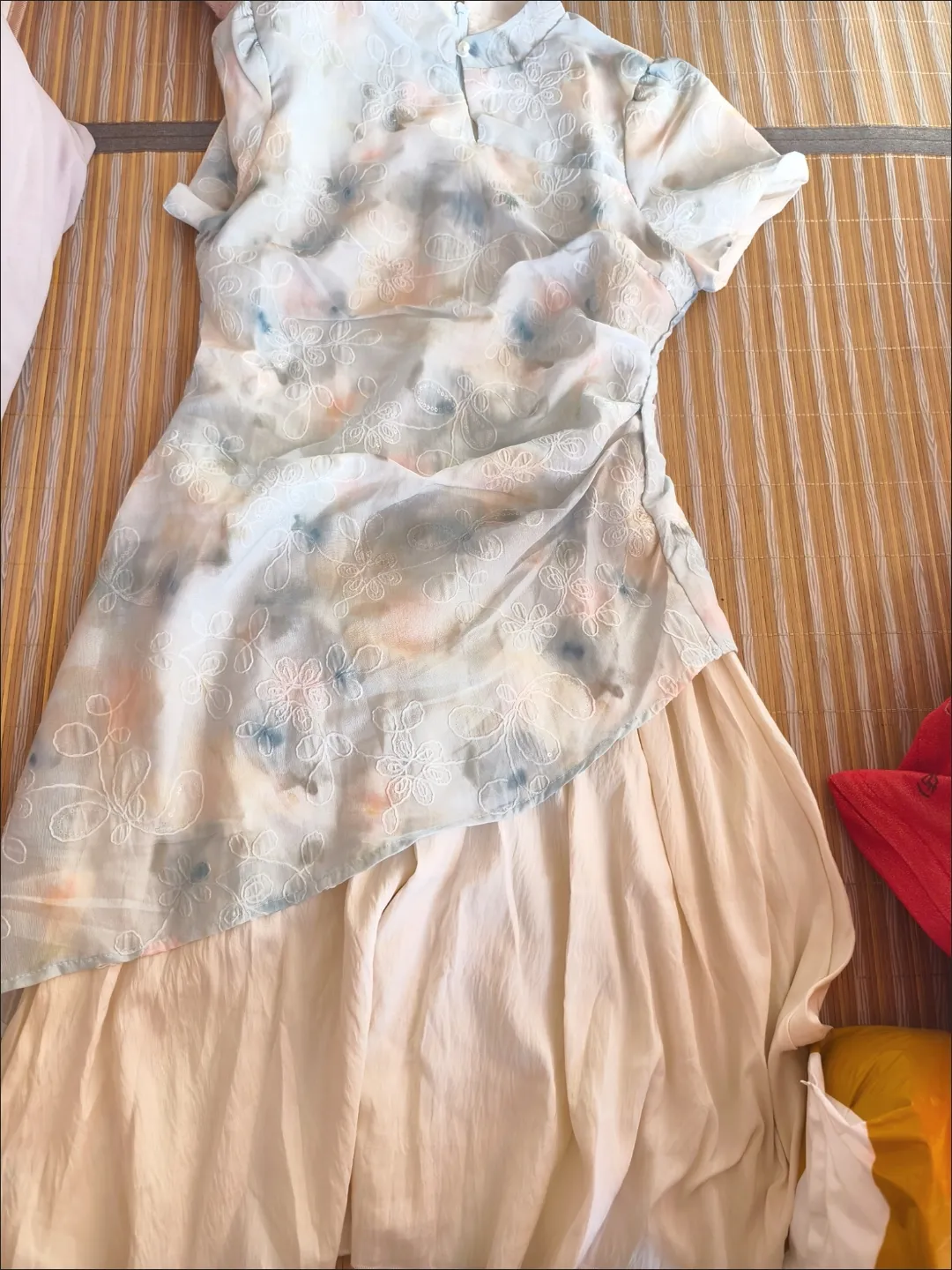‘新中式’ 仙气亮片花朵刺绣假两件旗袍