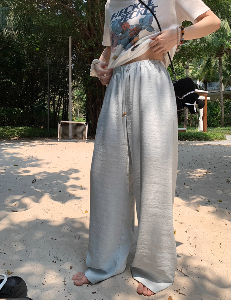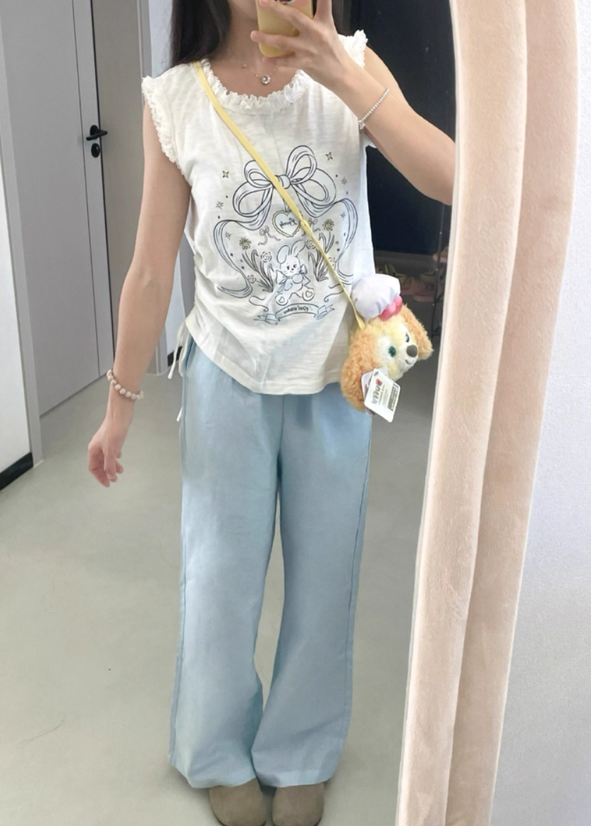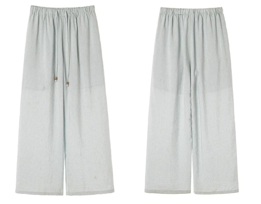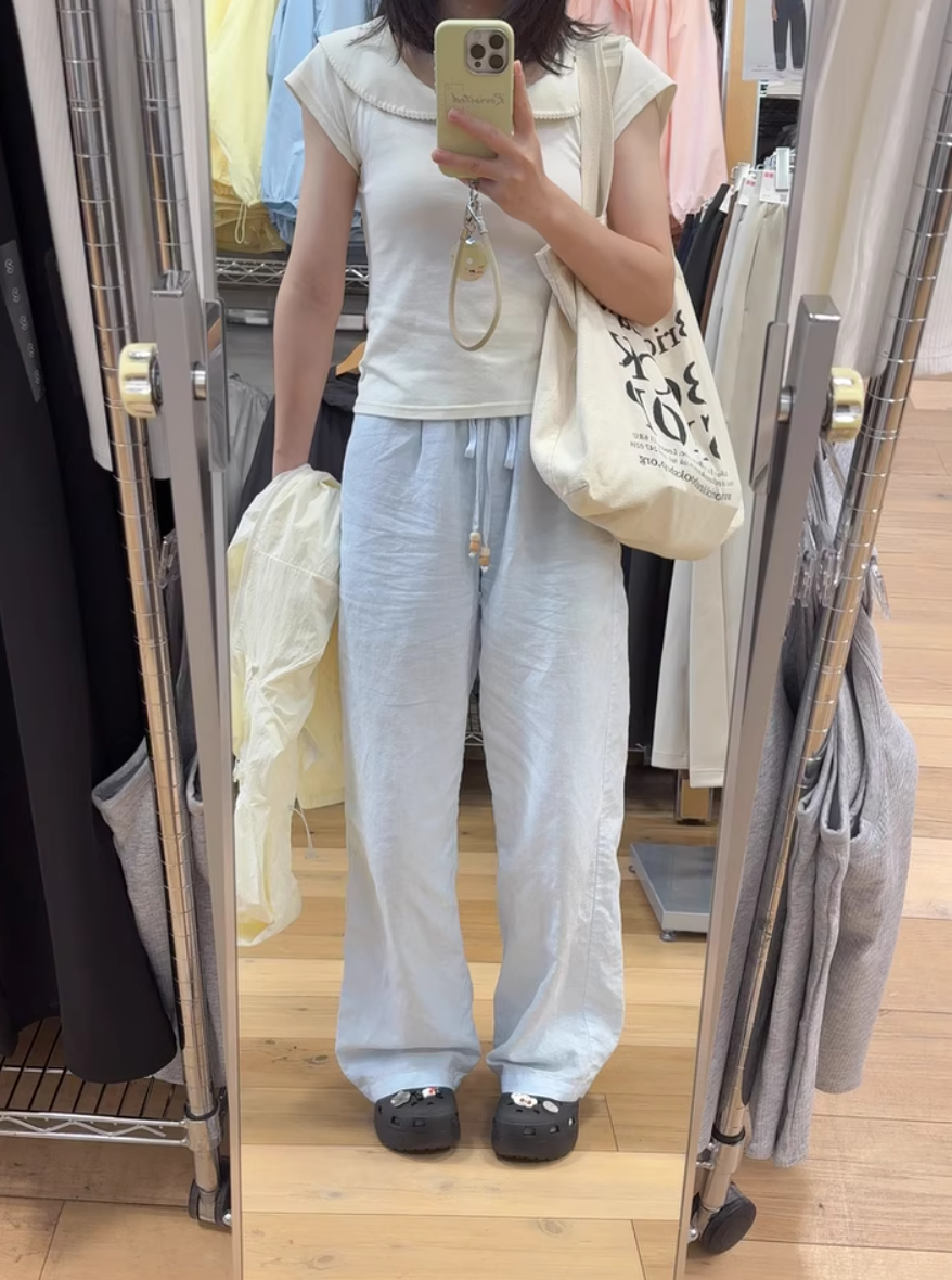 ‘老钱假日’ 木珠抽绳亚麻裤休闲裤